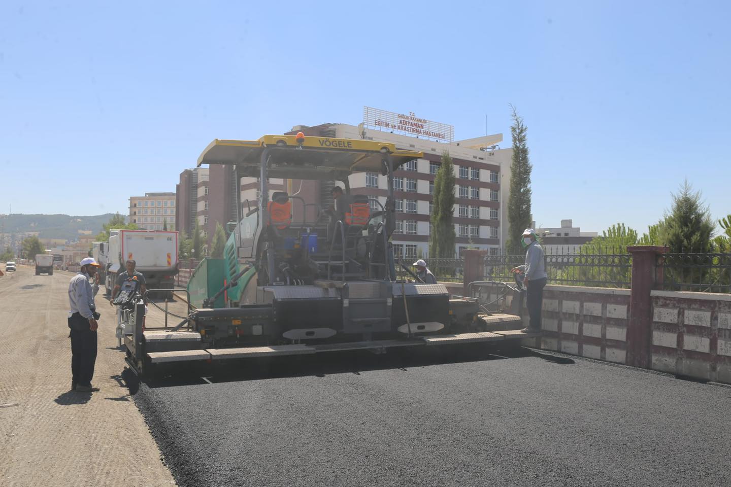 çalışması yapılan Adıyaman Eğitim ve Araştırma Hastanesi Acil girişinin asfalt serimi