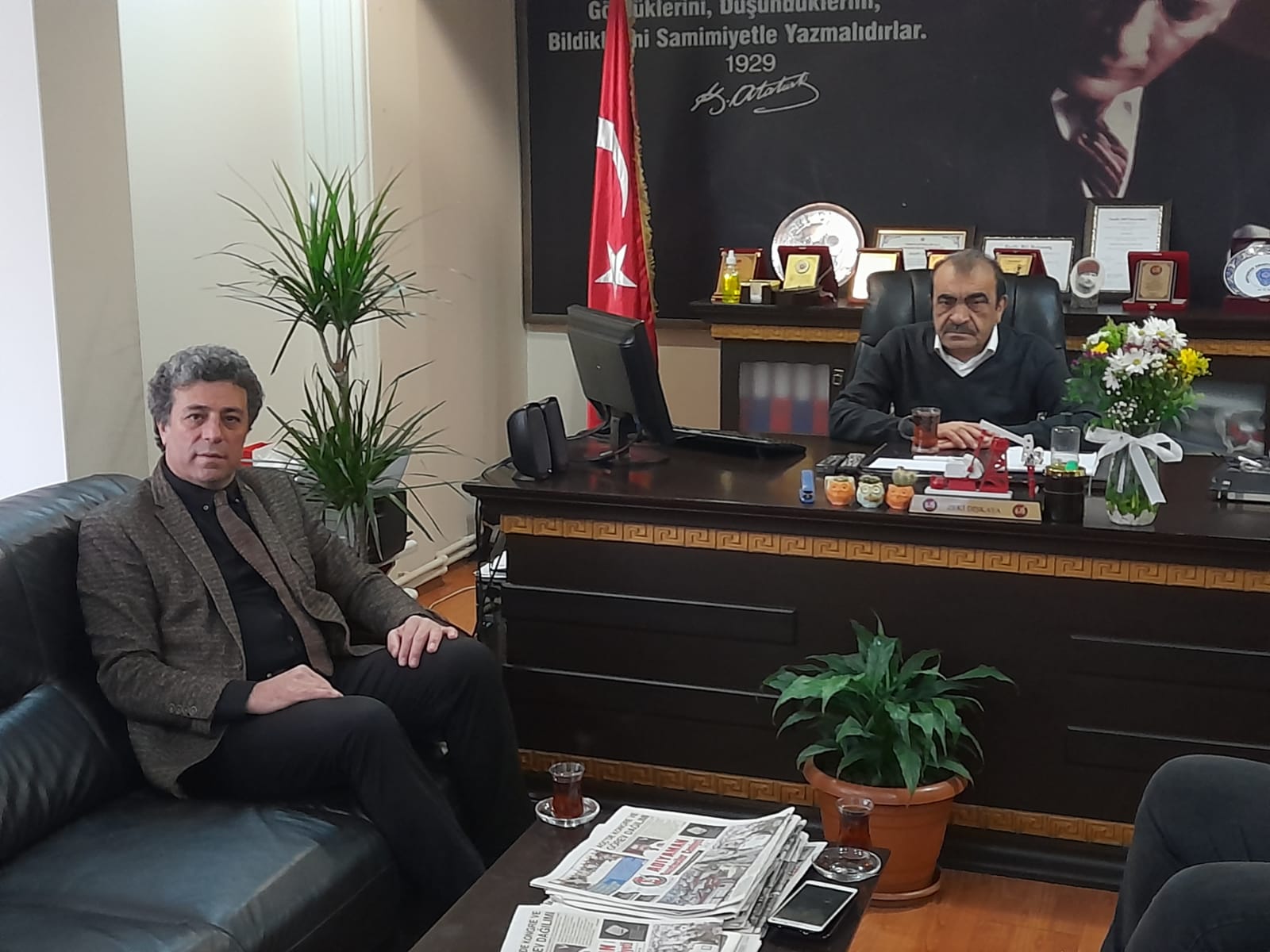 Atatürkçü Düşünce Derneği Adıyaman Şube Başkanı Aslan Palalı, 10 Ocak Çalışan Gazeteciler Günü sebebiyle Adıyaman Gazeteciler Cemiyeti Başkanı Zeki Dişkaya'ya ziyarette bulundu.