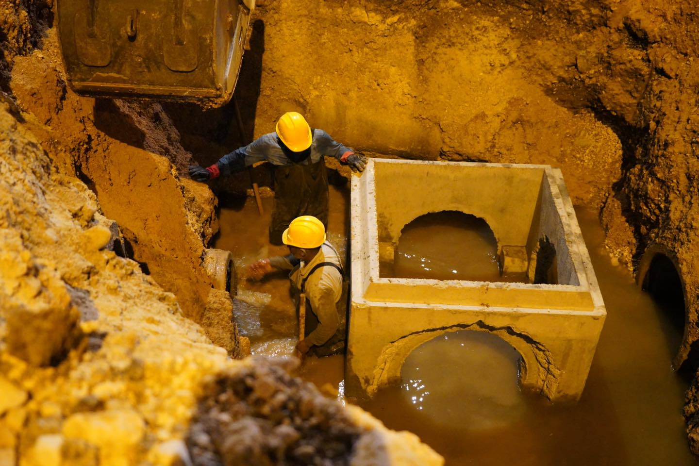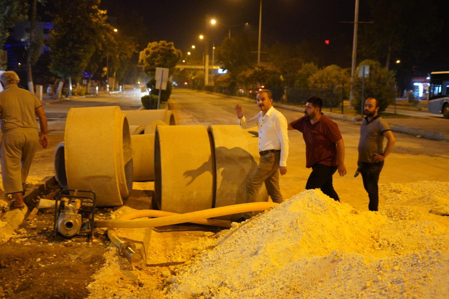bulunan kanalizasyon hattını gece geç saatlerde yeniledi.