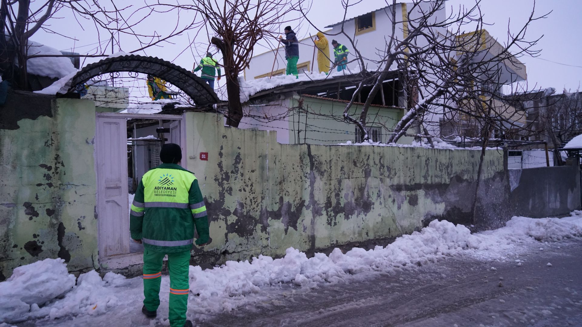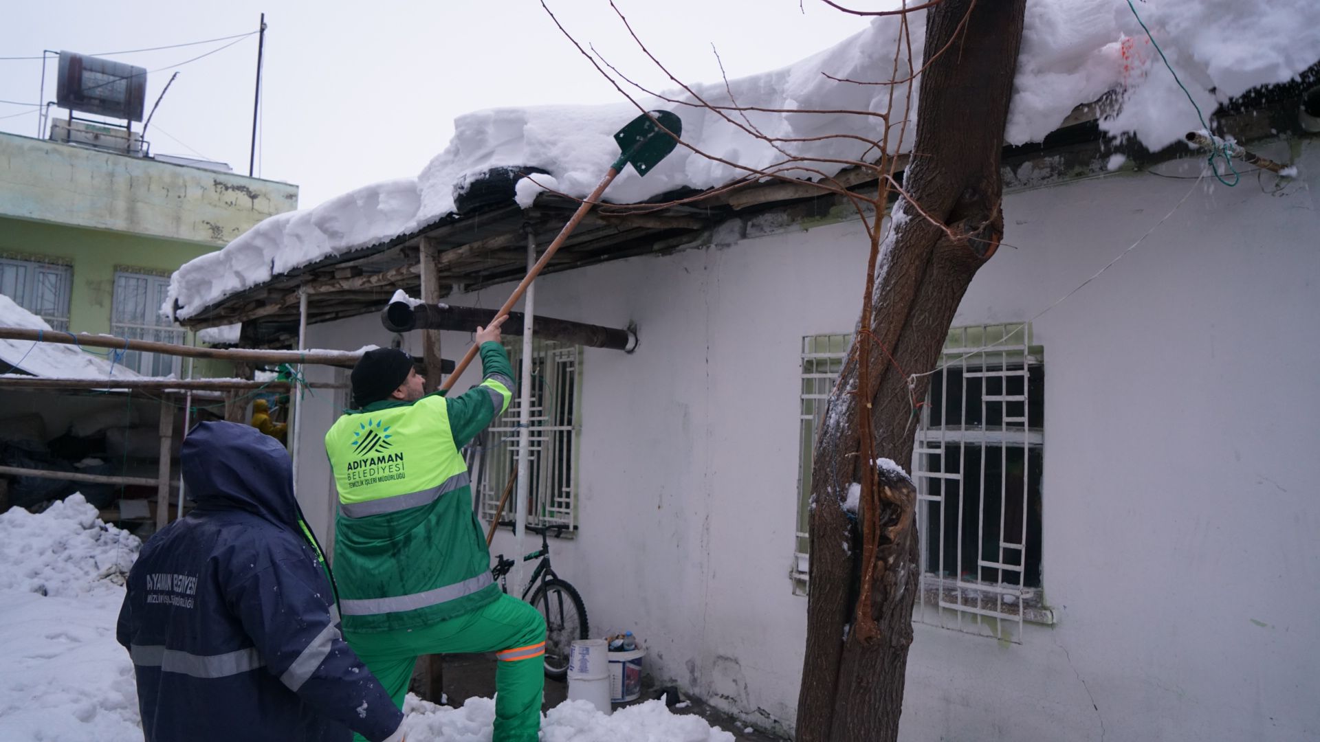 Yeşilyurt Mahallesi 21151 numaralı sokakta, iki çocuğu ve engelli anne babasıyla birlikte yaşayan Zahide Pulat isimli vatandaş, Adıyaman Belediyesi'ne yaptığı başvuruda, çatıda biriken kardan dolayı evlerinin yıkılma tehlikesiyle karşı karşı olduğunu belirterek, destek istedi. Gelen talebe ivedi şekilde cevap veren belediye ekipleri, Pulat ailesinin yaşadığı evin çatısını temizleyerek ailenin talebini yerine getirdi.