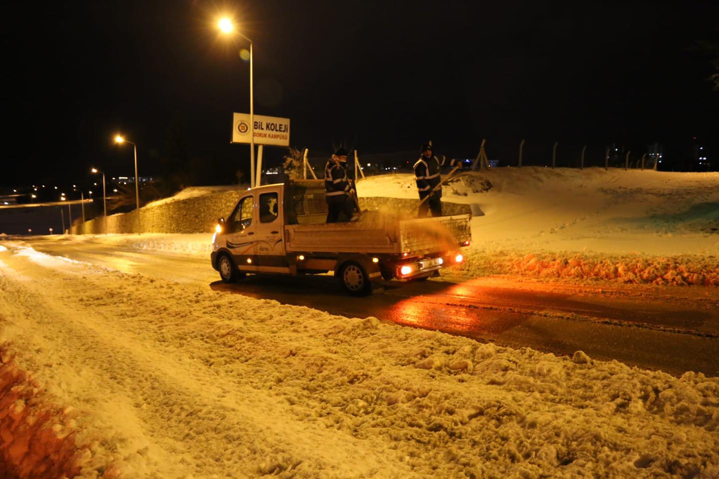 Ekipler tarafından sürdürülen çalışmaların ikinci günü hakkında detay bilgiler de veren Başkan Kılınç, 'Ekiplerimiz ilk gün olduğu gibi ikinci günde yoğun bir şekilde çalışmalarını sürdürmeye devam etti. Öncelikli olarak tuzlama ve yol açma çalışmaları konusunda 24 saat görev yapan personelimiz, şehrin en işlek noktalarında yolları açarak, vatandaşlarımızın esaretini n kısa sürede sona ermesini sağladı. Tuzlama ve yol açma çalışmaları dışında da vatandaşın sorunlarına yetişen arkadaşlarımız şimdiye kadar ihtiyaç sahibi vatandaşlarımızdan gelen tüm talepleri karşılamaya çalıştı' dedi.