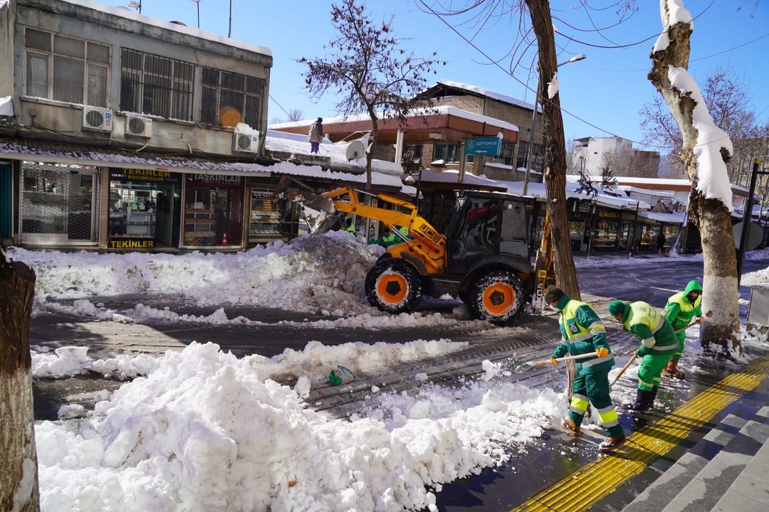 Yaklaşık 50 santimetreyi bulan ve son 25 yılın en yoğun yağışı olarak belirlenen kar yağışı başlamadan önce hazırlıklarını tamamlayıp, yağışla birlikte sahaya çıkan Adıyaman Belediyesi ekipleri yaptıkları yoğun çalışma ile tüm şehirde hayatı felç eden karı 24 saat içerisinde büyük ölçüde ana yollardan kaldırarak, ulaşımın bir nebze olsun rahatlamasını sağladı.