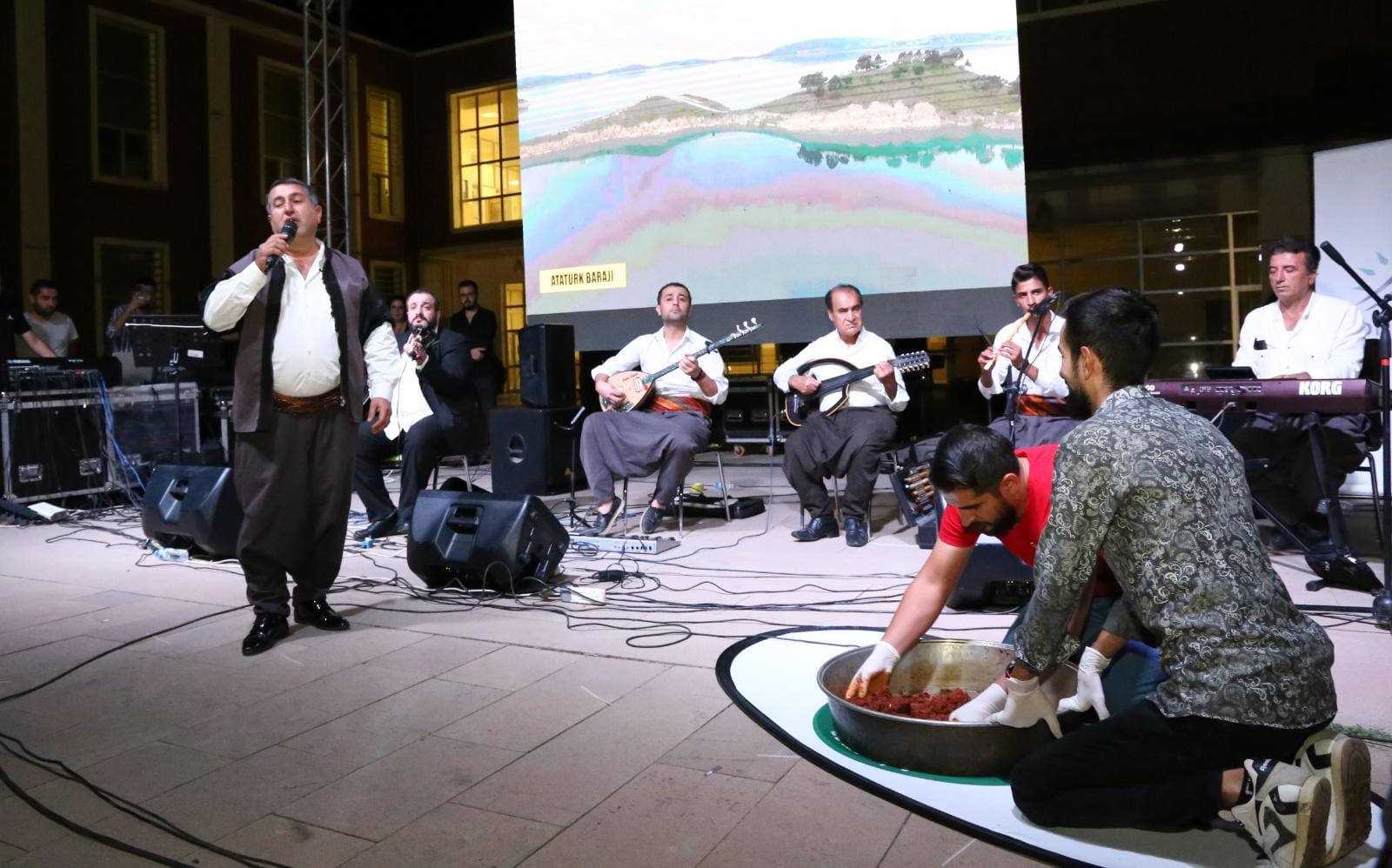 Çiğköfte ikramının yapıldığı programa katılan üniversiteli gençler, yerel sanatçılar tarafından