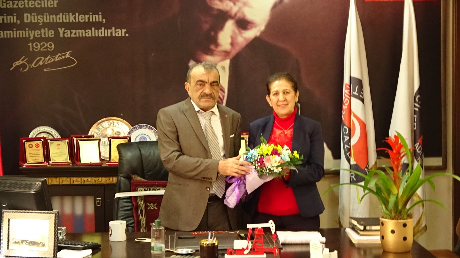10 Ocak çalışan gazeteciler günü münasebetiyle Adıyaman Gençkuşak Girişimci Kadınlar ve istihdam Dernek Başkanı Sayın Birsen GÜNAY Adıyaman Gazeteciler Cemiyeti Başkanı Zeki DİŞKAYA'Ya ziyarete bulundular. Başkan Zeki DİŞKAYA ziyaretten duyduğu memnuniyeti dile getirdi. Ziyaret karşılıklı tebriklerden sonra sona erdi.