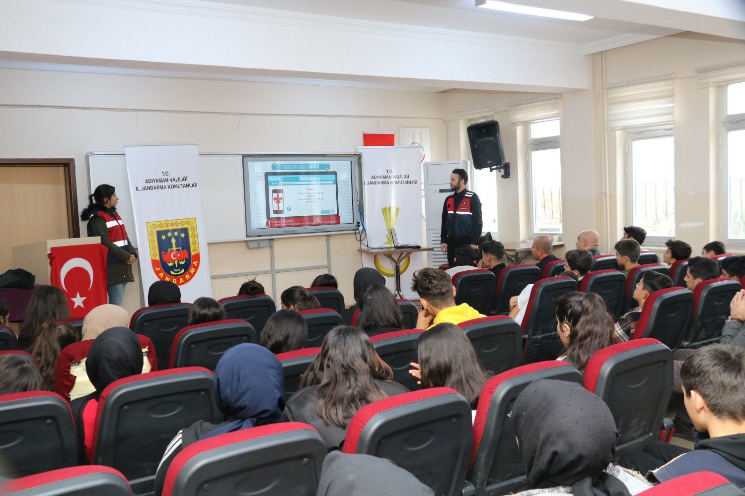 Adıyaman İl Jandarma Komutanlığı Siber Suçlarla Mücadele Şube Müdürlüğünce Merkez İlçe Jandarma Komutanlığı sorumluluk bölgesinde yer alan Atakent Çok Programlı Anadolu Lisesinde eğitim gören 250 öğrenciye; Dijital Okur Yazarlık,