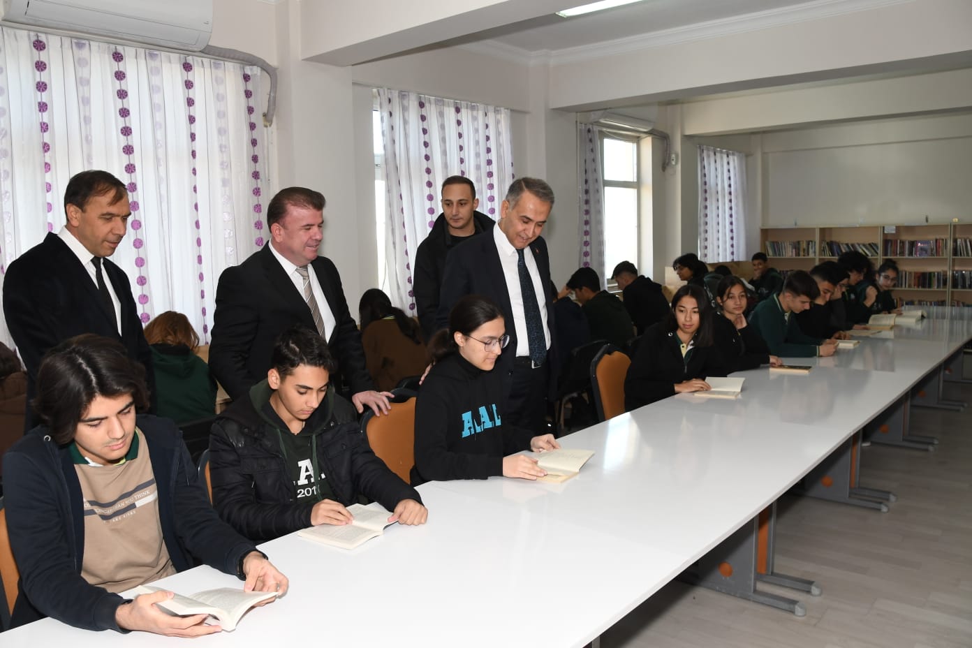 Karşılama sonrası Vali Mahmut Çuhadar, 'Kütüphanesiz Okul Kalmayacak Projesi' kapsamında ilimizde hayata geçirilen "Adıyaman Okuyor" projesinin tanıtımını yaparak okul bünyesinde kurulan kütüphanede öğrencilerle sohbet ederek, kitap okumanın önemi ile ilgili öğrencilere tavsiyelerde bulundu.