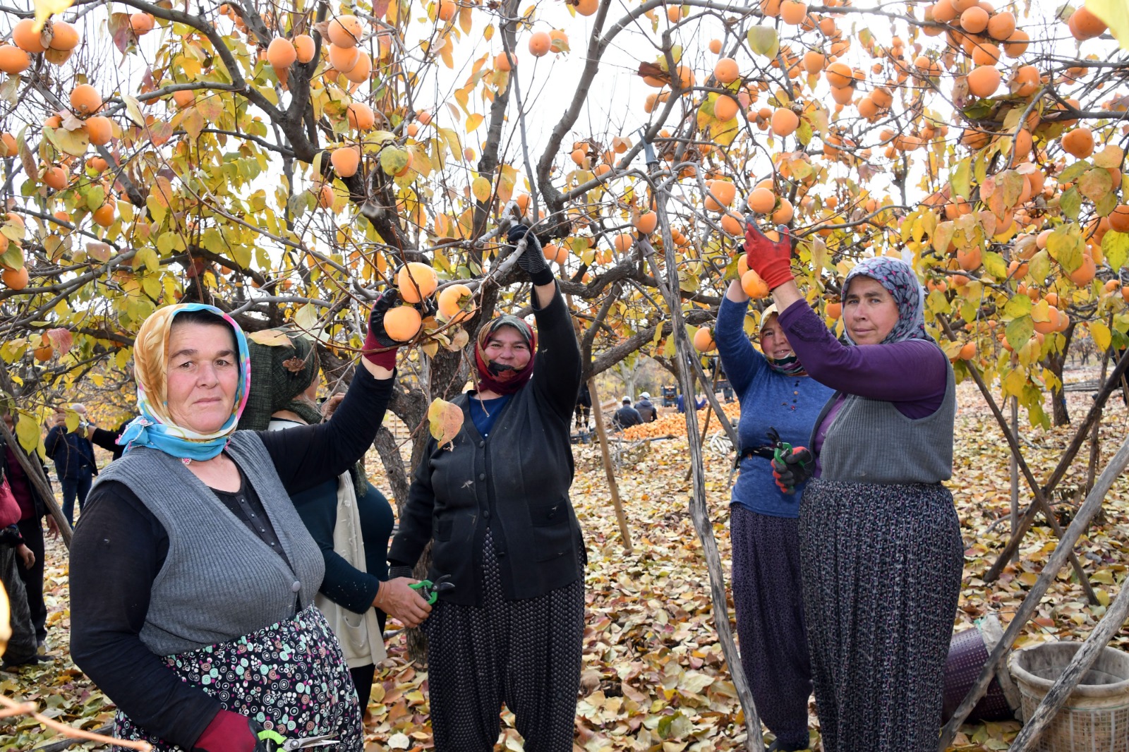 Adıyaman'ın Gölbaşı ilçesinde Trabzon Hurması olarak da bilinen Cennet Hurmasının hasadına başlandı.