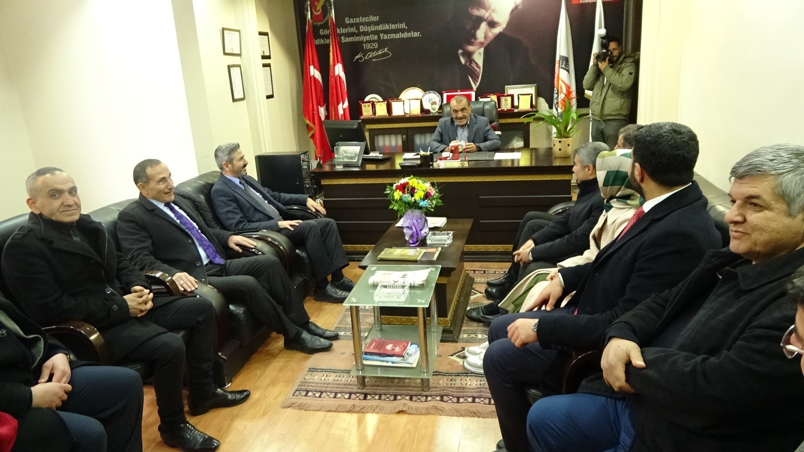 Ak Parti TBMM Milli Savunma Komisyonu Başkanı Ahmet AYDIN, beraberinde Ak Parti Milletvekili Halil İbrahim FIRAT, Ak Parti İl Başkanı Mehmet DAĞTEKİN, Merkez İlçe Başkanı Mustafa ALKAYIŞ, Ak Parti'nin Kadın Kolları Başkanı Saliha DİLER, Ak Parti Gençlik Kolları Başkanı Mevlüt KUŞTEPE ve Parti yöneticileriyle birlikte AGC'YE ziyarette bulundular. Ziyaret esnasında İbrahim Halil FIRAT: "10 Ocak gazeteciler gününü gecikmeli de olsa kutlama üzeri geldik. Bütün basın mensuplarını 10 Ocak gazeteciler gününü kutluyoruz" dedi. Adıyaman Milletvekili Ahmet AYDIN ise konuşmasında "TBMM'nin yoğun çalışmalarından dolayı düzenlediğiniz etkinliğe katılamadık telefon ile arayarak, telgraf çekerek kutlamış olsak da bu güzel günü kutlamak üzere bugün cemiyeti ziyarete geldik bütün basın çalışanlarının bu güzel gününü kutluyorum." dedi.