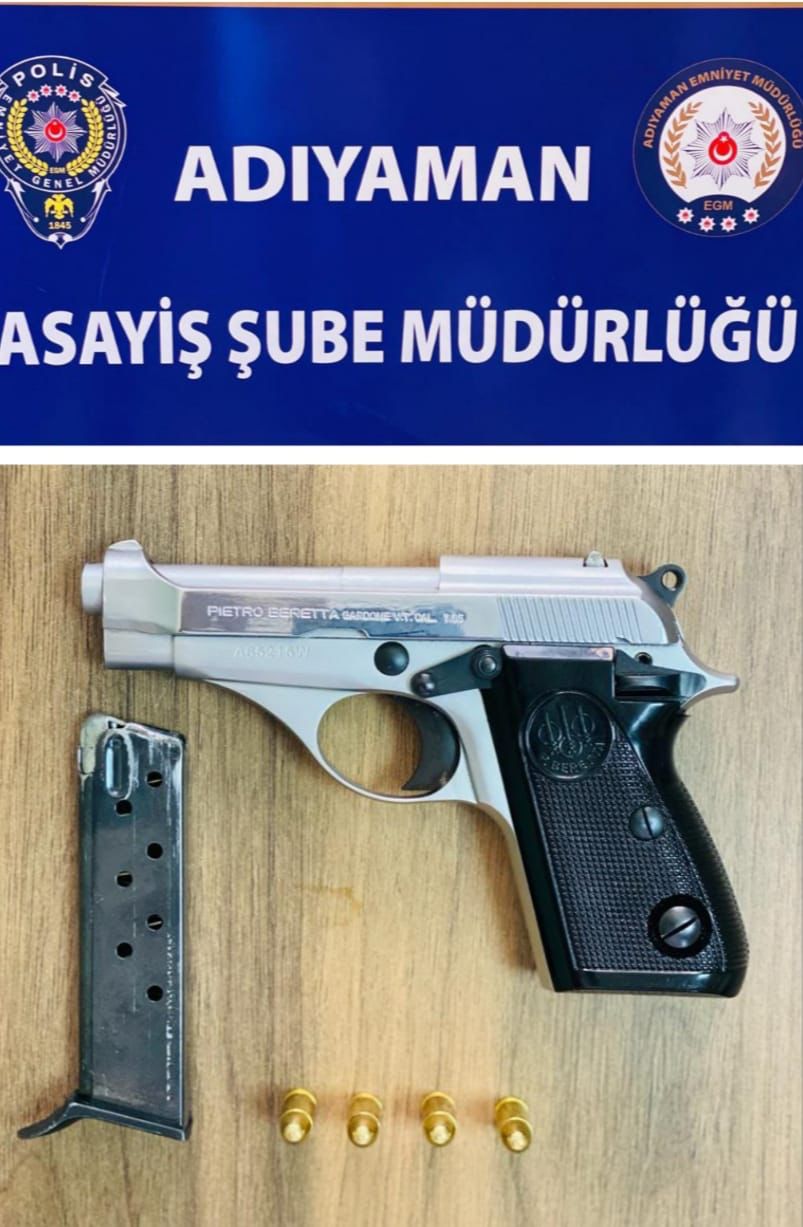 ? 5 Ruhsatsız Tabanca, 1 Ruhsatsız Av Tüfeği, 1 Kurusıkı tabanca ve 24 adet Fişek ele geçirilmiştir.