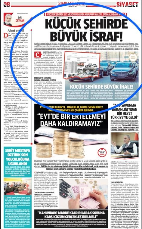 Adıyaman Belediyesi, ulusal yayın yapan Millî Gazete'nin 8 Kasım 2022 Salı günkü sayısında birinci sayfadan yayımladığı 'Küçük Şehirde, Büyük İsraf' başlıklı iftira habere cevap verdi.