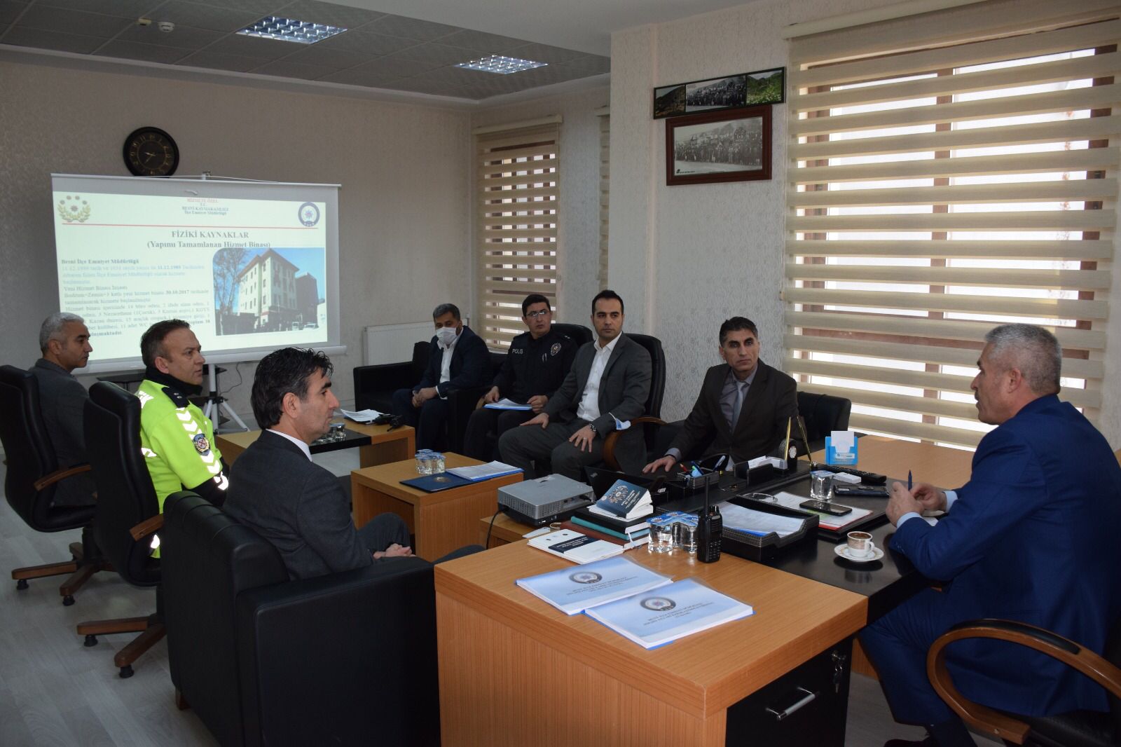Emniyet Müdürümüz, İlçe Müdürümüz ve sıralı Amirler ile gerçekleştirilen toplantıda 2021 (1 ay 15 gün)-2022 (1 ay 15 gün) zaman aralıklarında meydana gelen olayların istatistiki bilgileri, alınan önlemler ve sonuçları değerlendirildi. Besni ilçe emniyet müdürlüğümüzce,