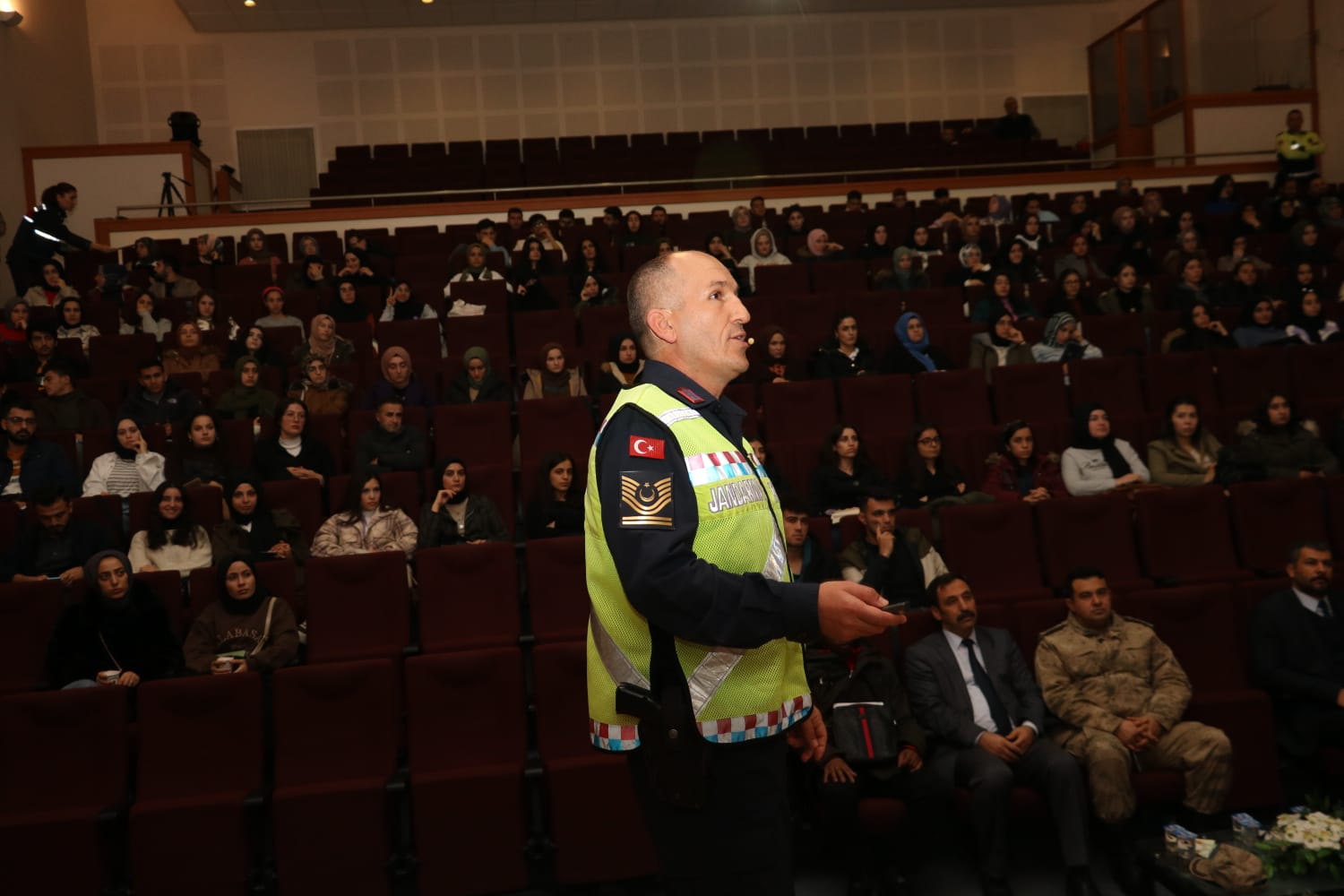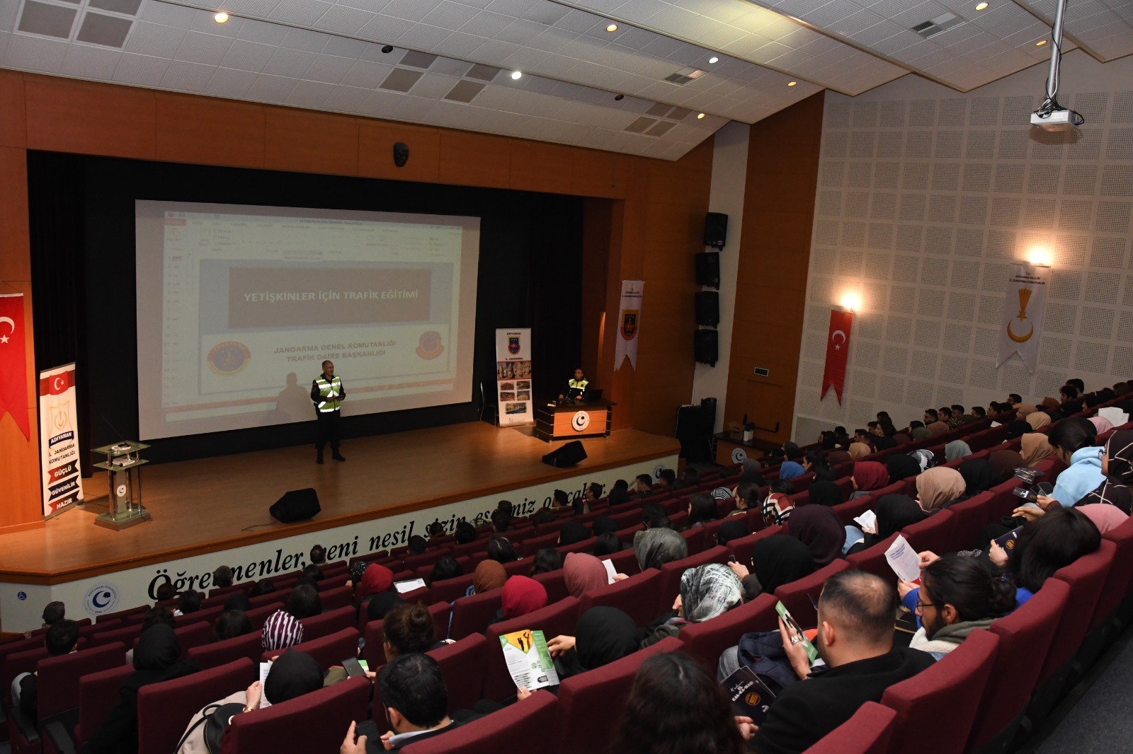 Adıyaman İl Jandarma Komutanlığı Trafik Şube Müdürlüğünce, 2021-2023 Karayolu Trafik Güvenliği Eylem Planı kapsamında Adıyaman Üniversitesinde eğitim gören gençlere Trafik Kazalarının Azaltılması, Söz Konusu İnsan İse Trafikte '
