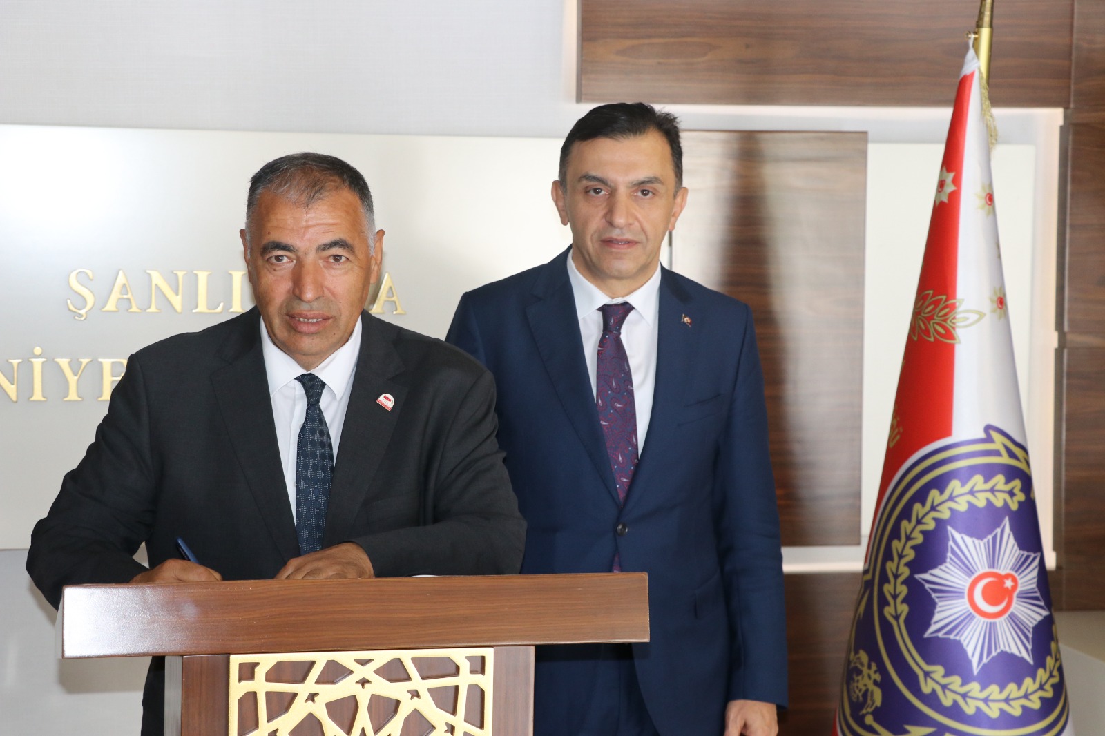 Göreve başlaması nedeniyle tanışma ve tebrik ziyaretlerini kabul eden Şanlıurfa İl Emniyet Müdürü Mehmet Murat Ulucan Şanlıurfa Çalışan Gazeteciler Cemiyeti yönetim kurulu üyelerini kabul etti.