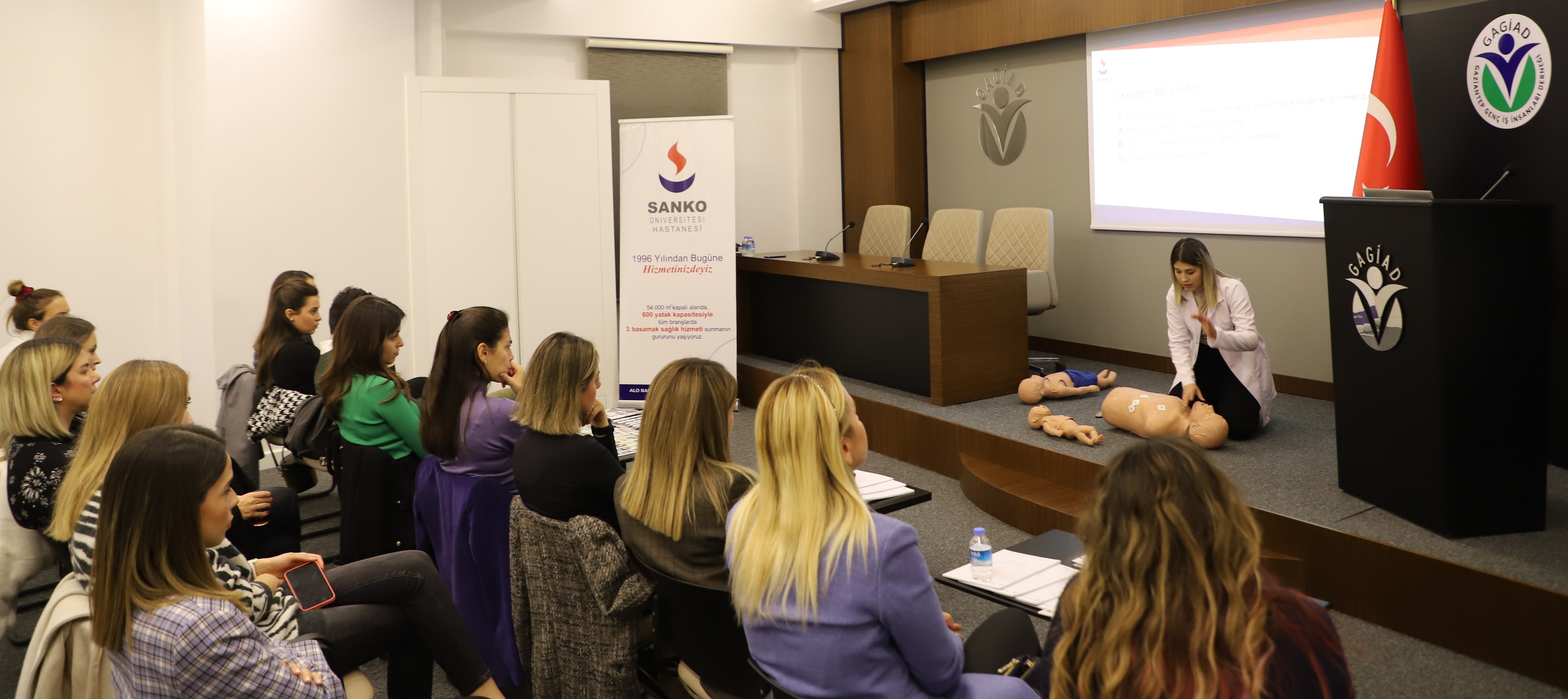 edilen eğitime SANKO Üniversitesi Hastanesi İlk Yardım Eğitim Merkezi olarak