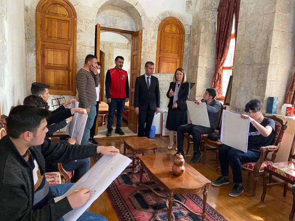 Gençlik ve Spor İl Müdürlüğüne bağlı Varlık Mahallesi Kültür Sanat Genç Ofiste devam eden kurslara katılan gençleri ziyaret eden Hanımefendi Serinay Çuhadar, buradaki Kültür Sanat Atölyesinde kurs gören gençlerle bir araya gelerek, onların çalışmalarını izleyip, gerçekleştirilen sosyal faaliyetlerle ilgili Gençlik ve Spor İl Müdürü Fikret Keleş'ten bilgi aldı.