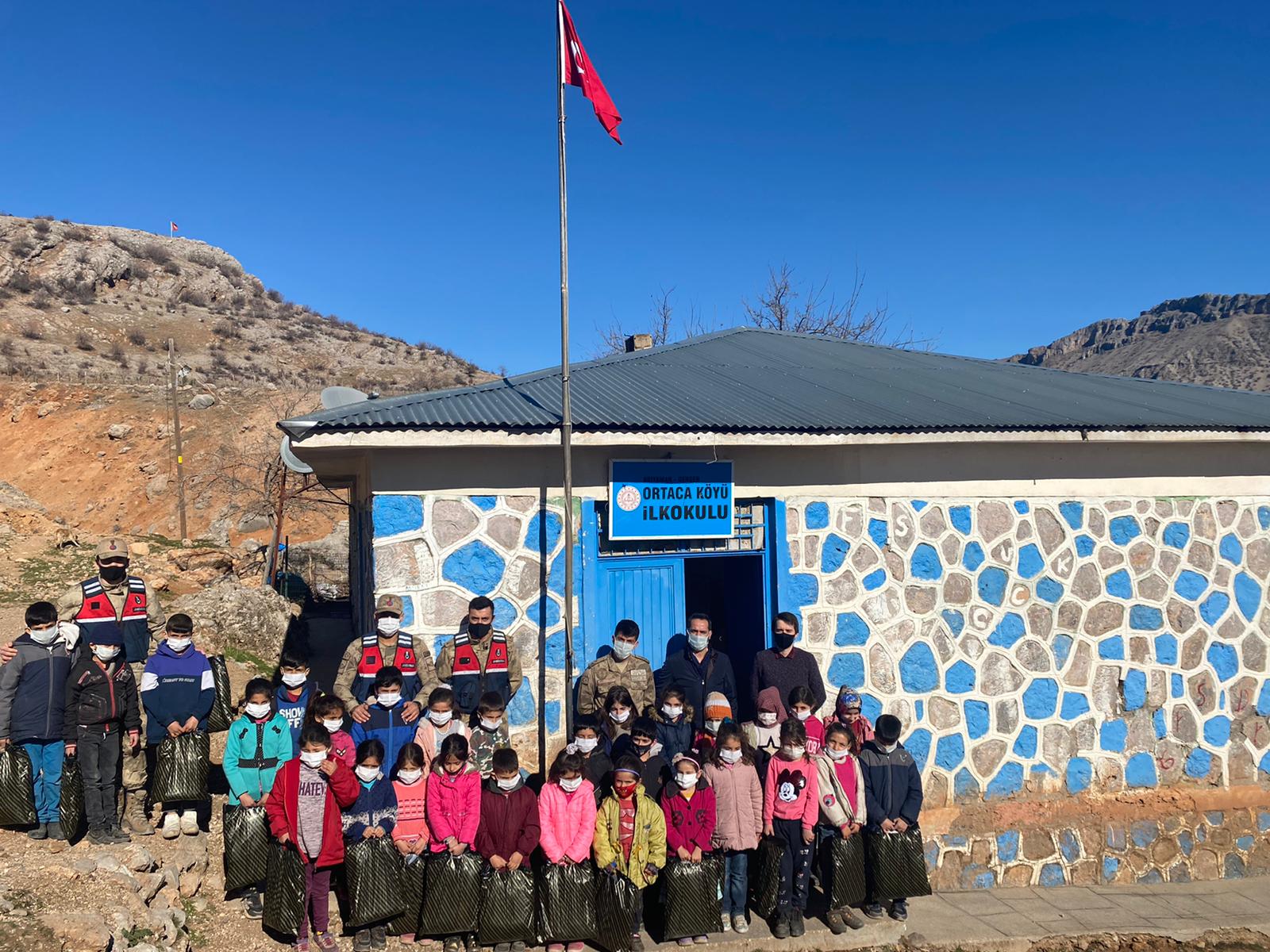 Adıyaman İl Jandarma Komutanlığı Gerger İlçe Jandarma Komutanlığınca sorumluluk bölgesinde yer alan ilköğretim okullarında eğitim gören 50 öğrenciye kışlık mont dağıtımı yapılmıştır.