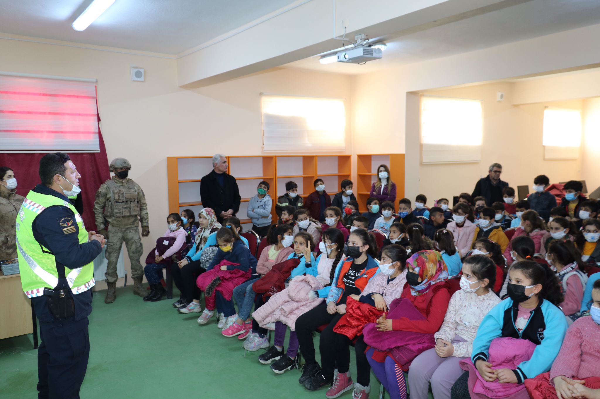 Adıyaman İl Jandarma Komutanlığı Basın Halkla İlişkiler ve Protol Birimi, Aile İçi Şiddetle Mücadele ve Çocuk Kısım Amirliği, Jandarma Trafik Timi, Motosikletli Jandarma Trafik Timi ve Jandarma Köpek Unsurları tarafından Adıyaman Merkez Ayyıldız İlkokulundaki 375 öğrenciye trafik kuralları, karayolu üzerinde yayaların doğru hareket tarzları, bisiklet kullanırken dikkat edilecek hususlar, emniyet kemeri ve kask kullanımının önemi, okul servis araçlarında öğrencilerin hareket tarzı, okul içinde ve dışında uyulması gereken pandemi kuralları konularında bilgiler verilerek tanıtım faaliyeti icra edilmiştir. Faaliyet bitmesine müteakip köpek unsurunun gösteri yapmasına müteakip, Tim Jandarma isimli çizgi film birlikte izlenilmiş, öğrencilere Jandarma Çocuk Dergisi ile Boyama kitabı dağıtılarak öğrenciler ile güzel vakit geçirilmiştir.