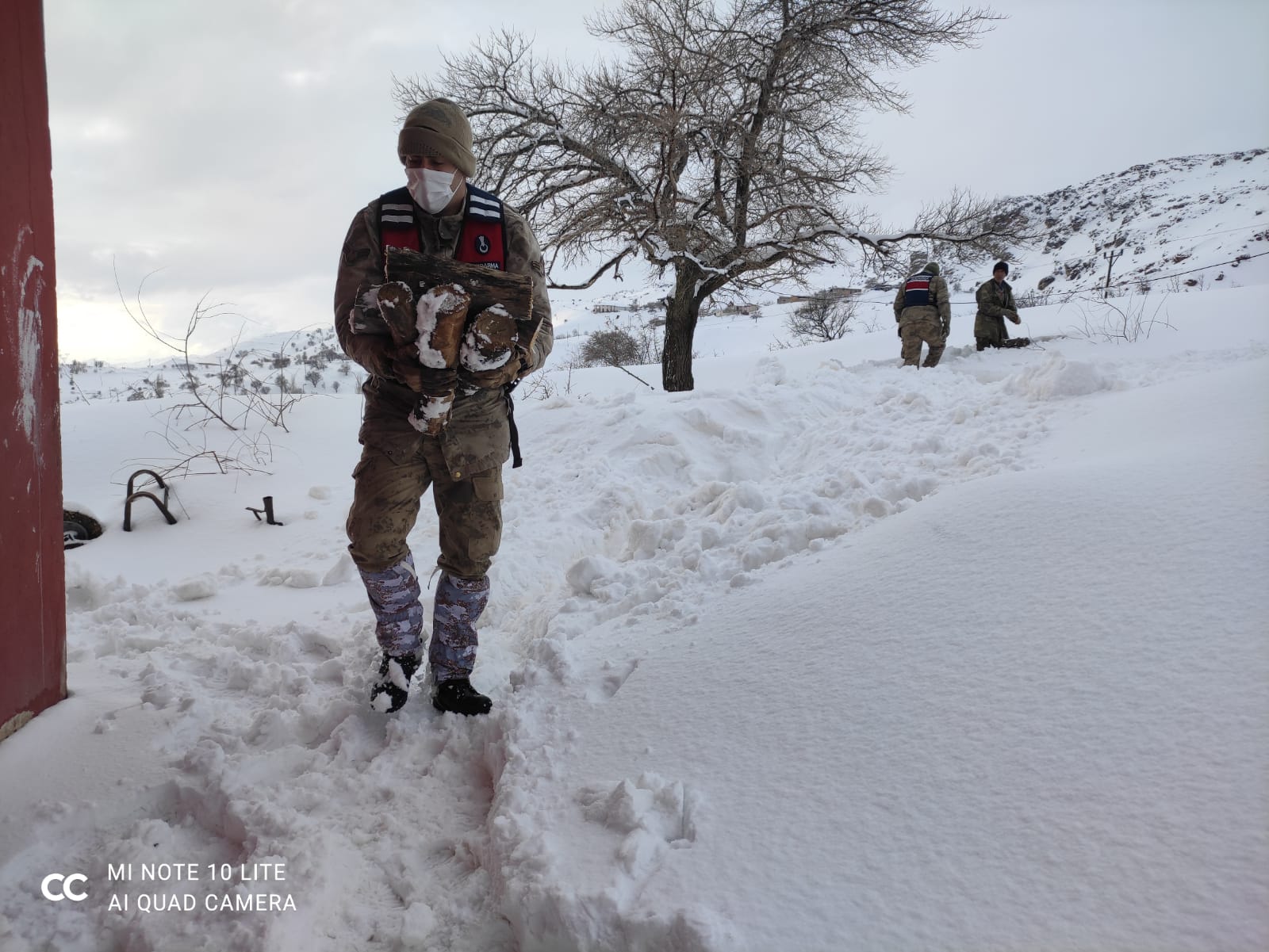 Adıyaman İl Jandarma Komutanlığı, Gerger İlçe Jandarma Komutanlığı sorumluluk bölgesinde yer alan Kaşyazı Köyü Karuk Mezrasında ikamet eden Y.Ç. isimli şahıs İlçe Jandarma Komutanlığını arayarak yoğun kar yağışından dolayı eşi B.Ç. ile birlikte köyde mahsur kaldıklarını odun koydukları yerin çöktüğünü ve aynı zamanda erzaklarının tükendiğini beyan etmesi üzerine Y.Ç. ve ailesinin ihtiyaçları karşılanmış olup aynı zamanda kar altında kalan odunlarının bir kısmı kar altından çıkartılarak evin içerisine taşınmıştır.