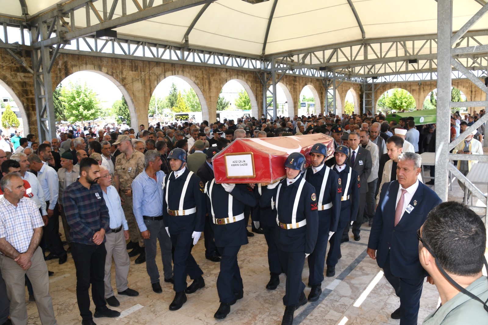 Kıbrıs Gazisi Aziz Çelik'in Türk Bayrağına sarılı naaşı, askerlerin omuzlarında törenin yapılacağı Mezarlık Camisine getirildi. Öğle namazına müteakip İl Müftüsü Mehmet Taşçı tarafından kılınan cenaze namazının ardından helallik alınmasıyla Kıbrıs Gazisi Aziz Çelik Adıyaman şehitliğinde toprağa verildi.
