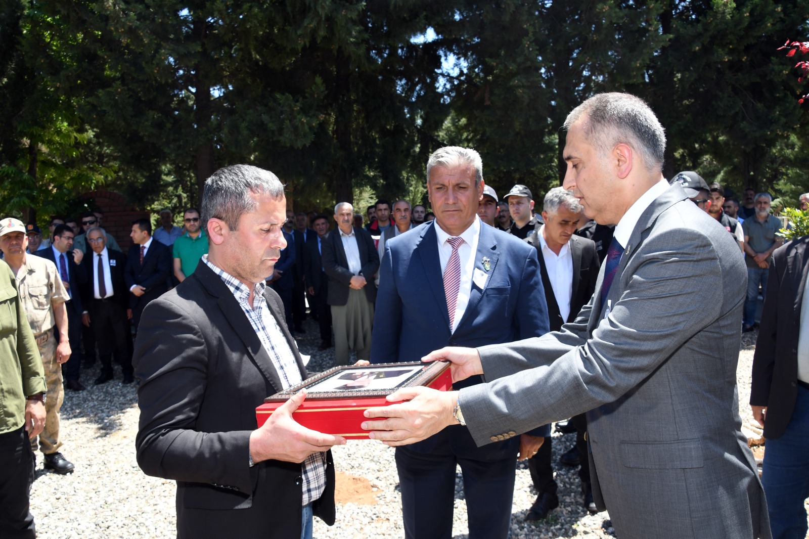 Tören sonrası Vali Mahmut Çuhadar, Kıbrıs Gazisi Aziz Çelik'in ailesine, çocuklarına ve yakınlarına başsağlığı ve sabır diledi.
