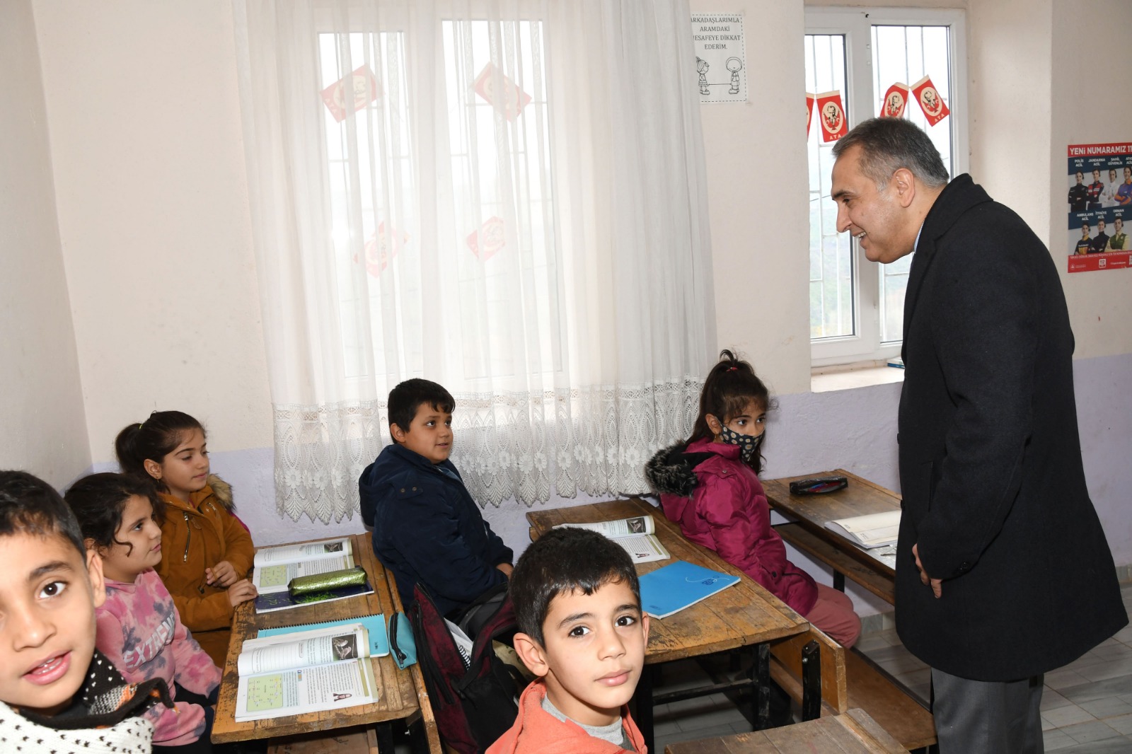 Ziyaret ettiği köylerde okulları da ziyaret eden Vali Mahmut Çuhadar, okulun ihtiyaç ve talepleri hakkında öğretmenlerden bilgi alıp, öğrencilerle sohbet ederek derslerinde başarılar diledi.