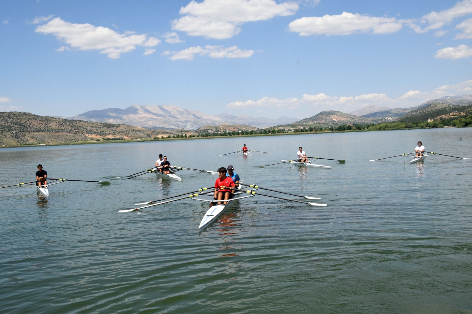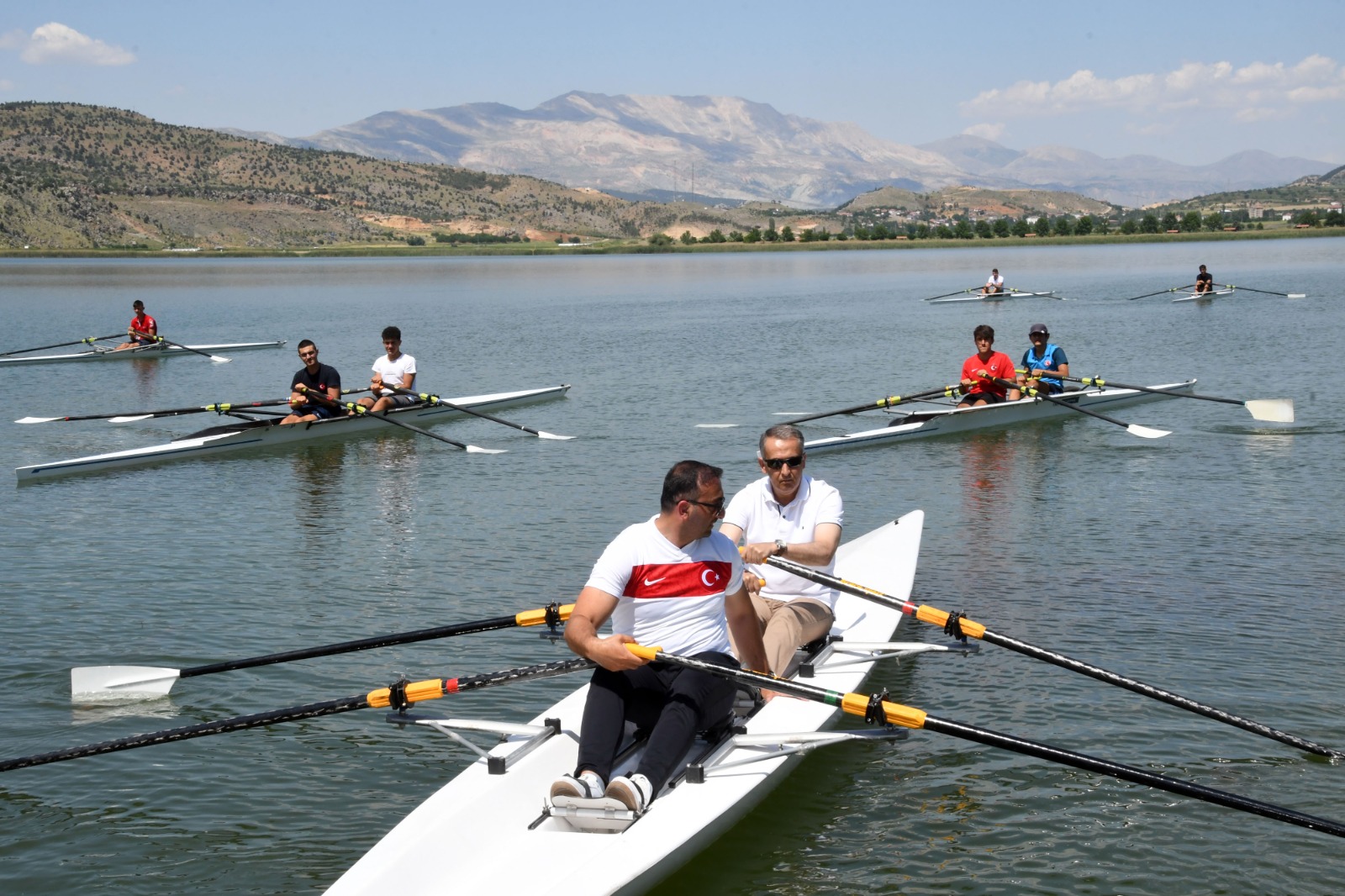 Türkiye'nin en başarılı kürek sporcularının katıldığı Milli Takım Kampında sporcularla birlikte Gölbaşı Gölünde suya inerek ilk kez kürek çeken Vali Mahmut Çuhadar, Adıyaman'ın gelecekte su sporlarının merkezi olacağını söyledi.