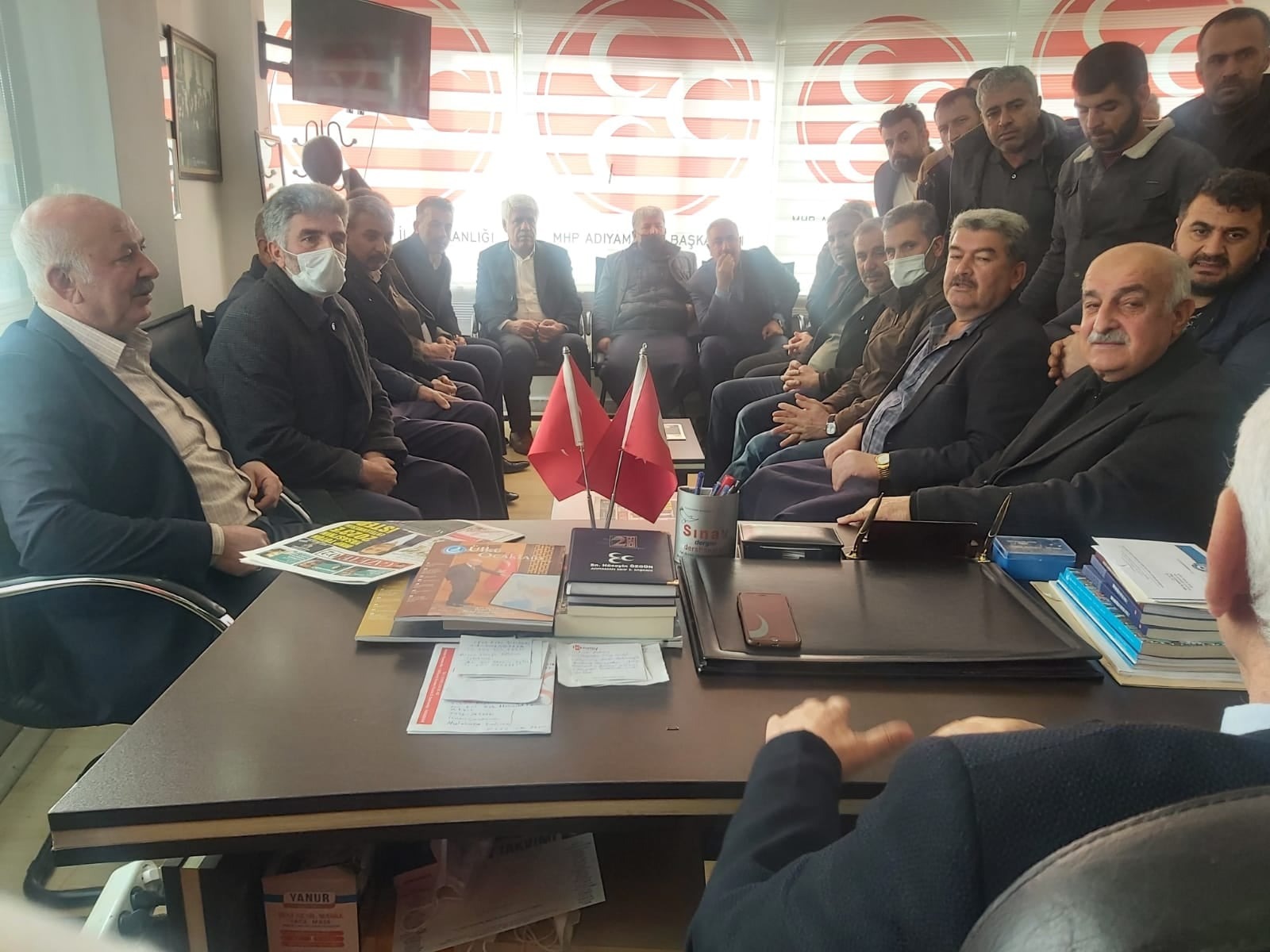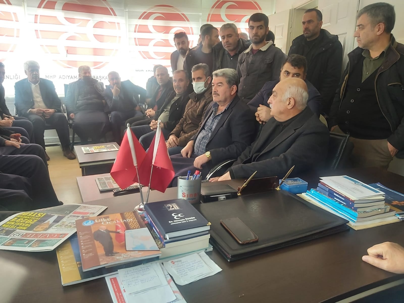 Nurettin Çolak ve Mehmet Doğan öncülüğünde MHP Adıyaman İl Başkanı Hüseyin Özgün'ü ziyaret eden 50 kişilik tütün üreticileri heyeti, gündemden bir türlü düşmeyen Adıyamanlı tütün üreticileri ve satıcılarının sıkıntılarını dile getirdiler.