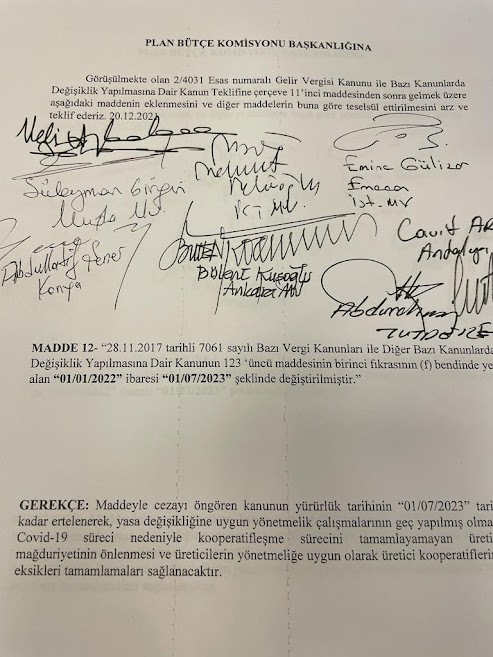 TBMM Plan ve Bütçe Komisyonu'ndaki Gelir Vergisi Kanunu ile Bazı Kanunlarda Değişiklik Yapılmasına Dair Kanun Teklifi'nin görüşmeleri sırasında TBMM Başkanlık Divanı Üyesi ve CHP Adıyaman Milletvekili Abdurrahman Tutdere ile bazı CHP Milletvekillerinin imzasıyla tütüne 3 yıldan 6 yıla kadar hapis cezası getiren yasanın yürürlük tarihinin 2023 yılına kadar ertelenmesine ilişkin önerge sunuldu, ancak önerge AKP ve MHP milletvekillerinin oylarıyla reddedildi.