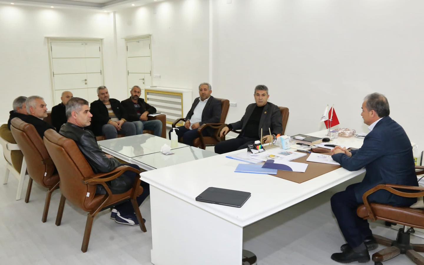 Adıyaman Muhtarlar Federasyonu üyesi muhtarlar, Belediye Başkanı Dr. Süleyman Kılınç'ı ziyaret ederek görüş alış verişinde bulundu. Adıyaman Muhtarlar Federasyonu Başkanı Abdulkadir Geylani Taş ve yönetimi, Adıyaman Belediye Başkanı Dr. Süleyman Kılınç'ı makamında ziyaret etti.Ziyarette kısa bir konuşma yapan Federasyon Başkanı Abdulkadir Geylani Taş, her fırsatta kendilerine destek olan Adıyaman Belediyesi'nin bütün birimleri adına Başkan Kılınç'a teşekkürlerini iletti. 'Memleketimizin her köşesinde, vatandaşımızın meselelerine çözüm üretebilmek adına kıymetli muhtarlarımızla 7/24 birlikte hareket etmeye ve ilimiz adına istişarelerde bulunmaya devam edeceğiz' diyen Belediye Başkanı Kılınç ise muhtarların ziyaretinden duyduğu memnuniyeti dile getirerek, 'Muhtarlık, halkla devlet arasında bir köprüdür. Bu kadar önemli bir görevi yürüten muhtarlarımıza destek olmak da devletimizin ve belediyemizin görevidir. Bizde göreve geldiğimiz günden bu yana muhtarlarımızla hep koordine içerisinde olmaya, sorunlarına kulak vermeye ve taleplerini imkanlarımız dahilinde yerine getirmeye gayret gösterdik. İnşallah bundan sonraki süreçte de eksiklerimizi tamamlamış bir şekilde muhtarlarımıza ve mahallelerine gerekli hizmetleri götüreceğiz. Bu vesileyle bizleri ziyaret eden muhtarlarımıza teşekkür ediyorum' şeklinde konuştu. Sohbet havasında geçen ziyarette Belediye Başkanı Kılınç, muhtarlarla ilin ve mahallelerinin sorunları üzerine görüş alışverişinde bulundu.
