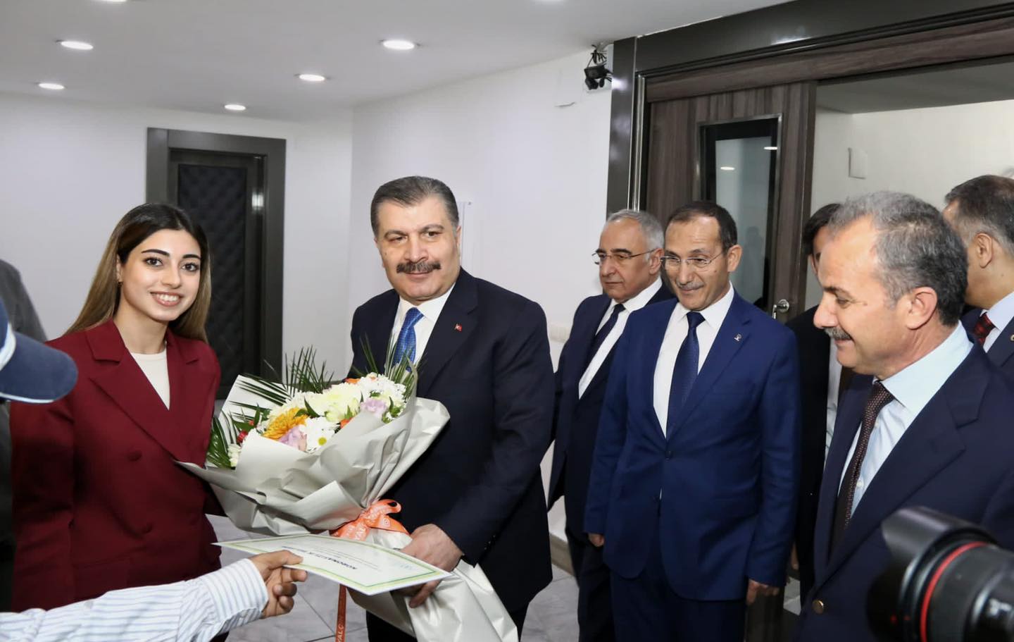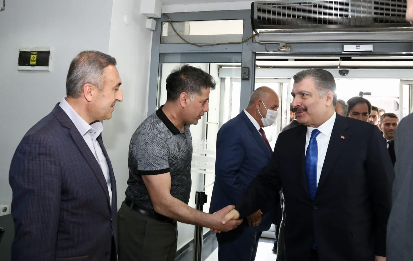 Adıyaman Belediye Başkanı Dr. Süleyman Kılınç, belediye meclis üyeleri, belediye başkan yarımcıları ve birim müdürleri tarafından kapıda karşılanan Bakan Koca'ya, Milli Savunma Komisyon Başkanı ve AK Parti Adıyaman Milletvekili Ahmet Aydın, Adıyaman Valisi Mahmut Çuhadar, Adıyaman Üniversitesi Rektörü Prof. Dr. Mehmet Turgut, Adıyaman İl Sağlık Müdürü Uzm. Dr. Erdoğan Öz, AK Parti İl Başkanı Mehmet Dağtekin ile AK Parti Merkez İlçe Başkanı Mustafa Alkayış eşlik etti.