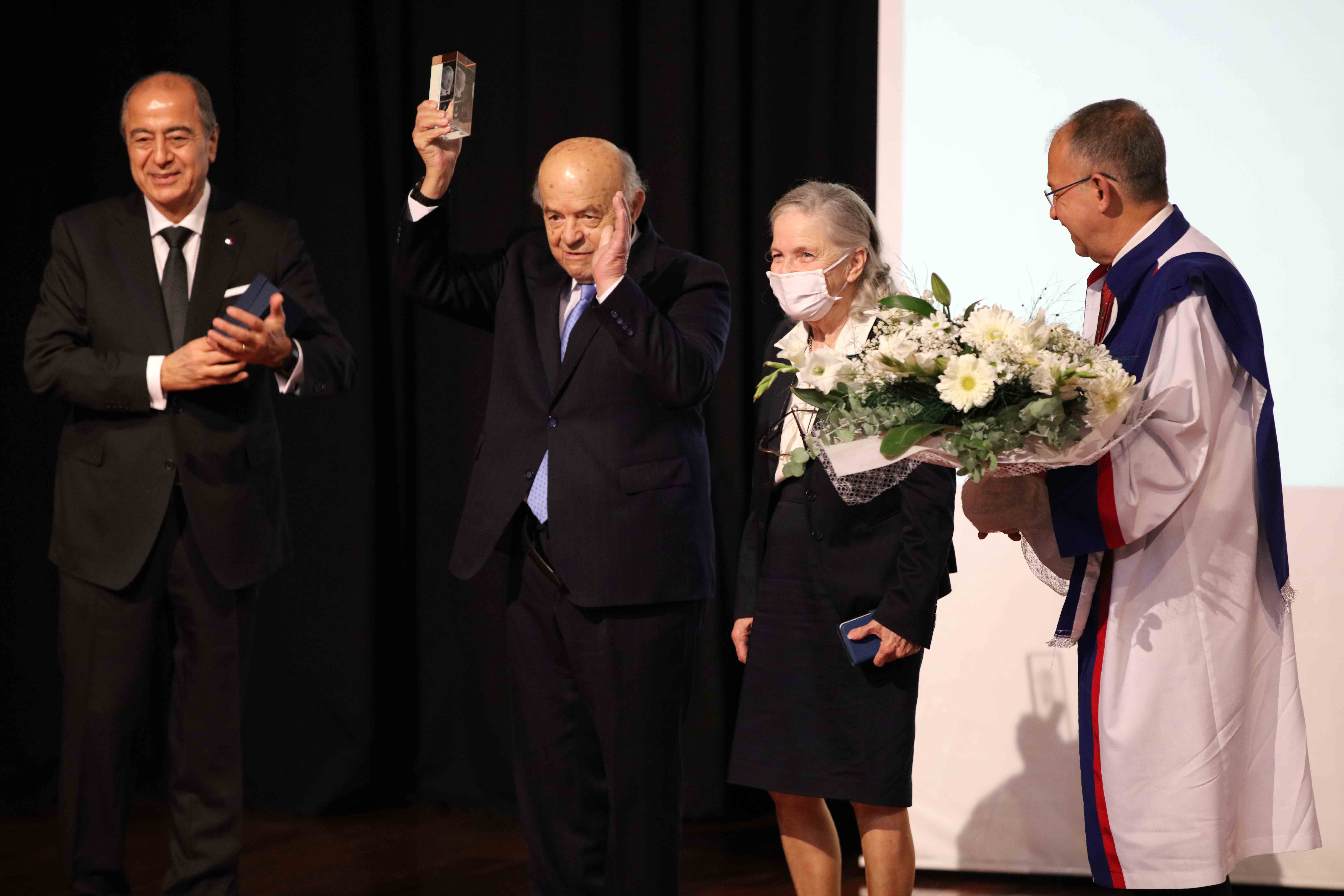 Açılış dersinin tamamlanmasının ardından Prof. Dr. İbrahim Ayhan Özdemir'e Mütevelli Heyet Başkanı Zeki Konukoğlu ve Rektör Prof. Dr. Güner Dağlı tarafından armağan ve çiçek takdim edildi.