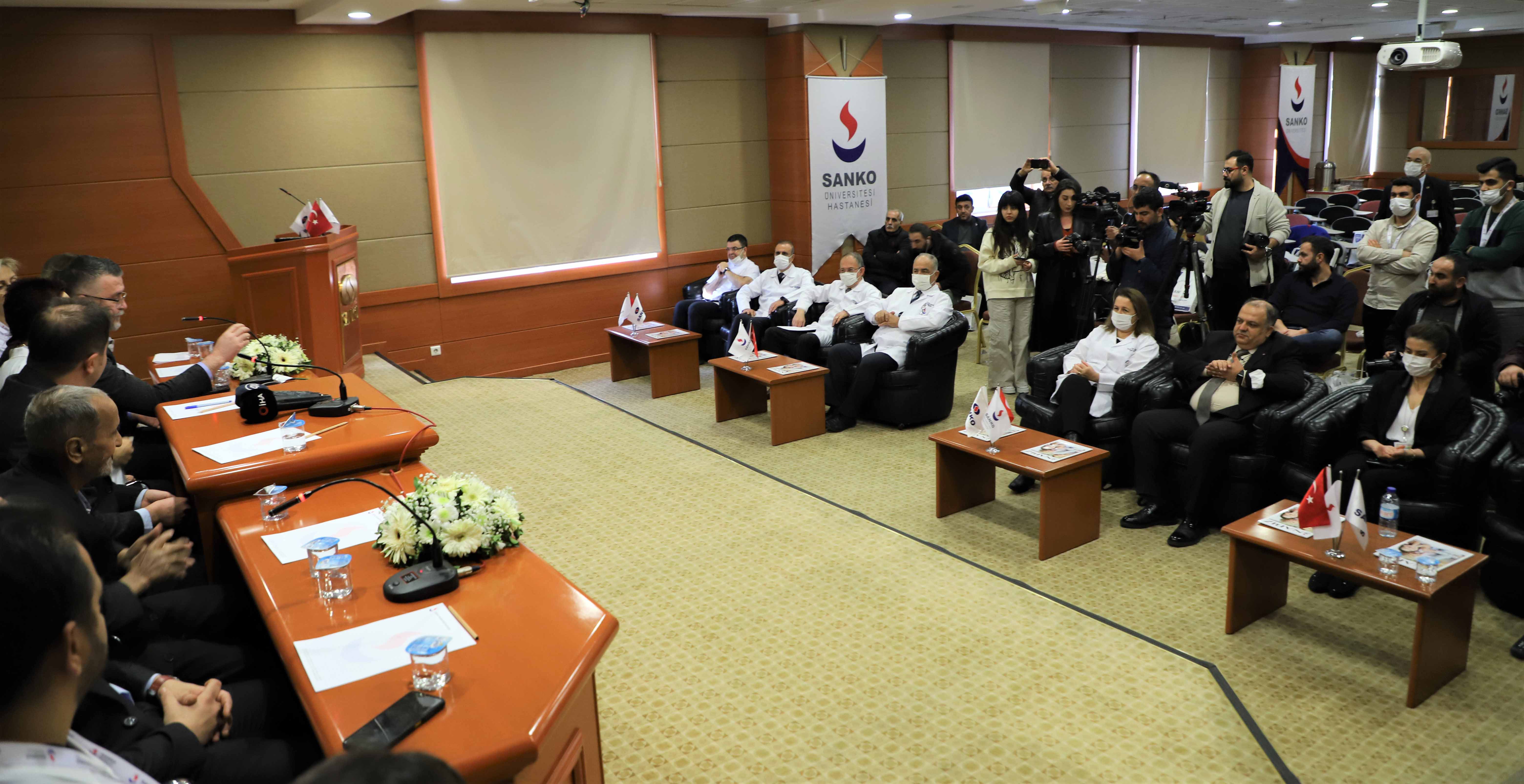 SANKO Üniversitesi Anadolu Toplantı Salonunda düzenlenen basın toplantısına; SANKO Üniversitesi Rektör Yardımcısı Prof. Dr. M. Metin Bayram, Genel Sekreter Dr. Yusuf Ziya Yıldırım, Lisansüstü Eğitim Enstitüsü Müdürü ve Tıp Fakültesi Dekan Yardımcısı Prof. Dr. Ayşen Bayram, SANKO Üniversitesi Hastanesi Genel Müdürü Dr. Sermet Kileci, Genel Müdür Yardımcısı Rabia Ağar, Mesul Müdür Dr. Suat Özerbaş ve Başhemşire Ceylan Özyılmaz da katıldı.