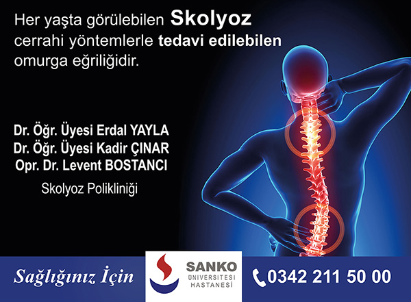 SANKO Üniversitesi Tıp Fakültesi Beyin Sinir ve Omurilik Cerrahisi Ana Bilim Dalı Öğretim Üyesi de olan Dr. Öğr. Üyesi Erdal Yayla, skolyozun omurga düzlemindeki çarpıklık olduğunu, hastalık değil bir şekil bozukluğu olarak değerlendirilmesi gerektiğini söyledi.