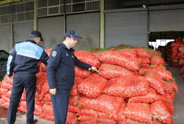 Şanlıurfa Büyükşehir Belediyesi Bünyesindeki Zabıta Daire Başkanlığı Ekipleri, Hal Pazarında Denetime Çıktı. Bir Ko misyoncuda Bulunan Kuru Soğanların Bozuk Olduğunu Fark Eden Ekipler, Duruma Hemen Müdahale Etti.