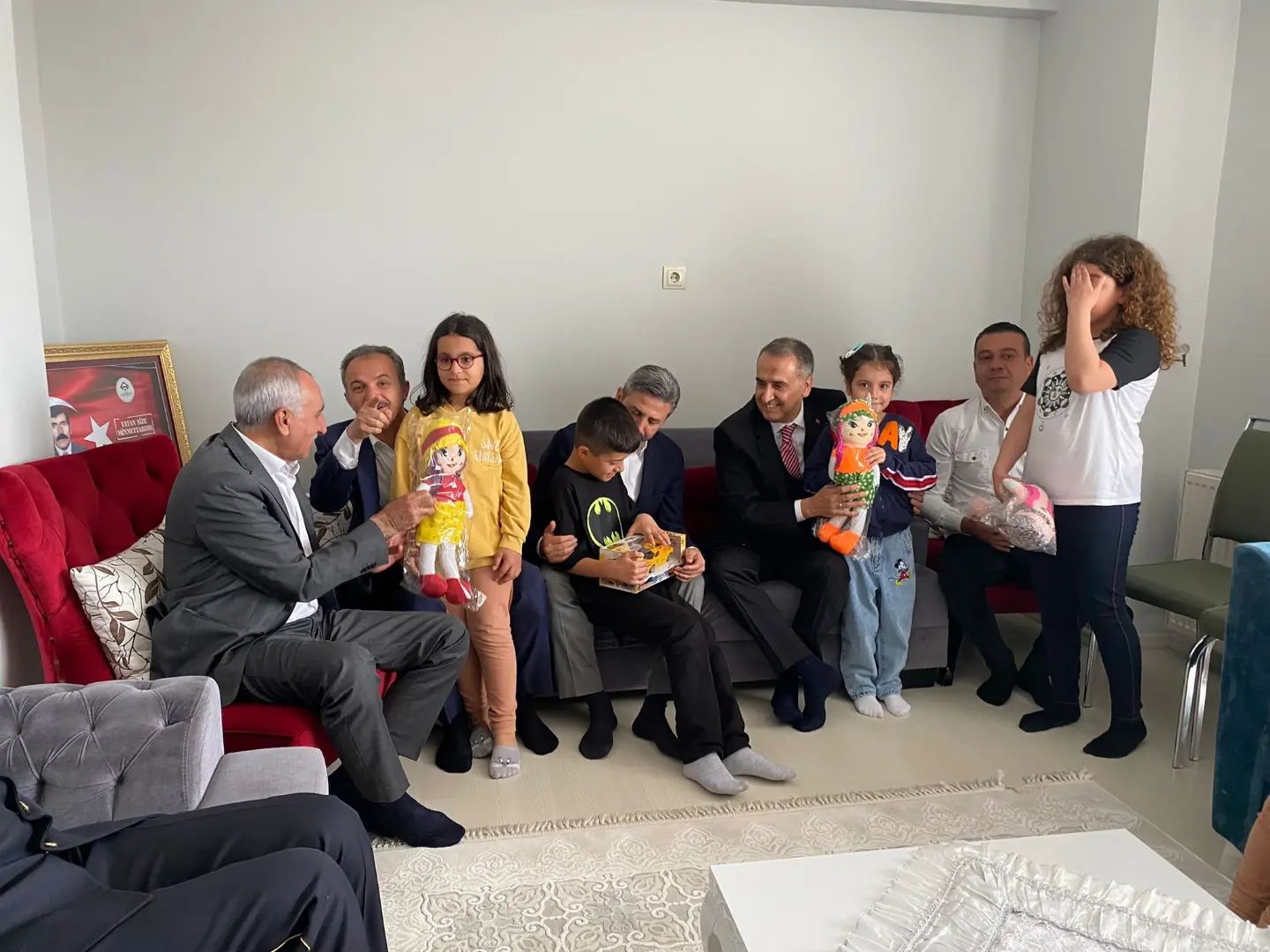 Karşılıklı sohbet havasında geçen ziyaretlerde Vali Mahmut Çuhadar ve eşi Serinay Çuhadar şehit ailelerine çiçek takdim edip yakın ilgi gösterirken, şehitlerimizin kıymetli emanetleri olan çocukları ve yeğenlerine de oyuncak ve çeşitli hediyeler verdi.
