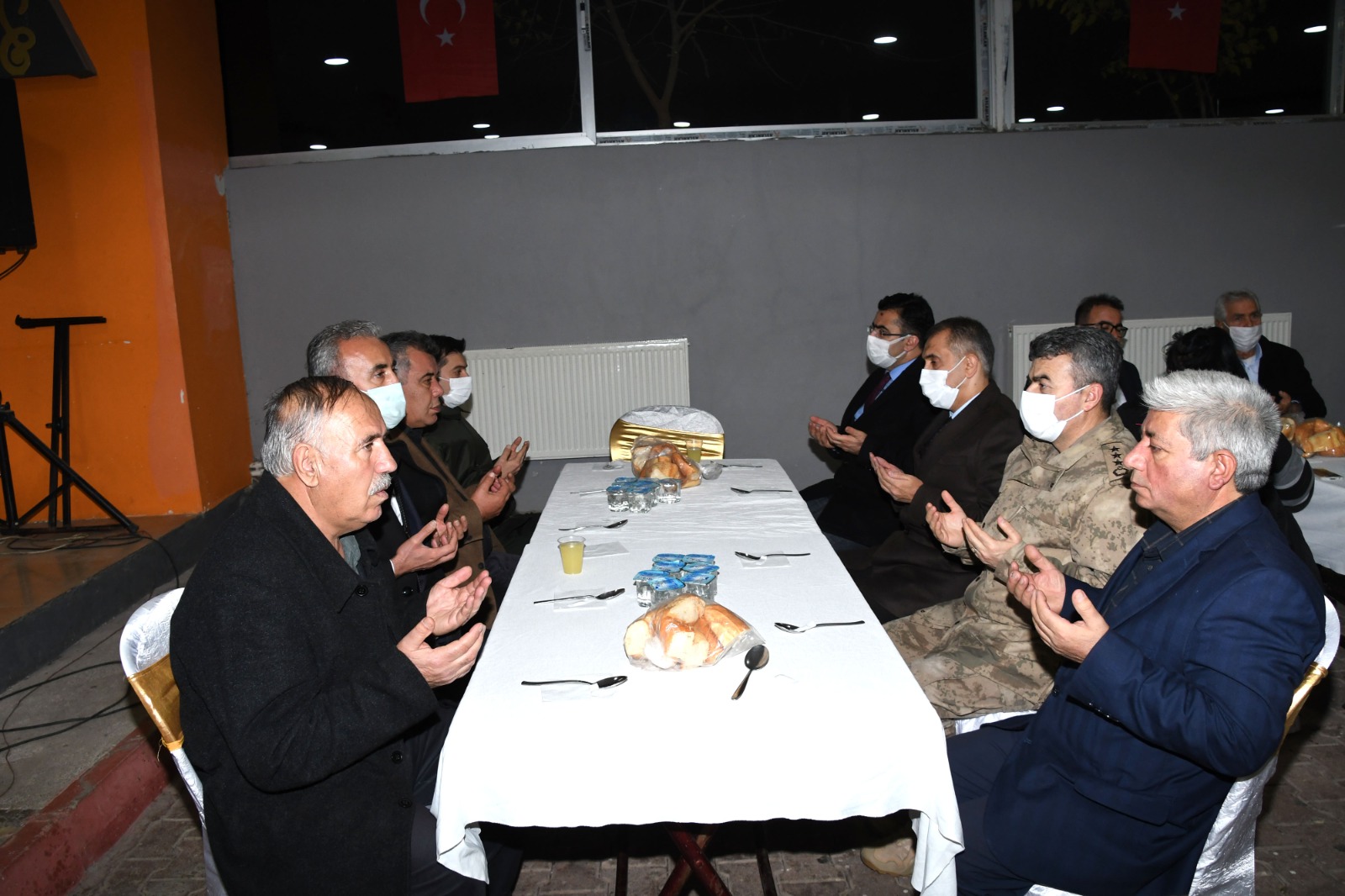 Okunan Mevlid-i Şerif'in ardından Vali Mahmut Çuhadar, Şehit Uzman Onbaşı Fırat Demir'in babası Mehmet Demir ve şehidin kardeşlerine başsağlığı ve sabır diledi.
