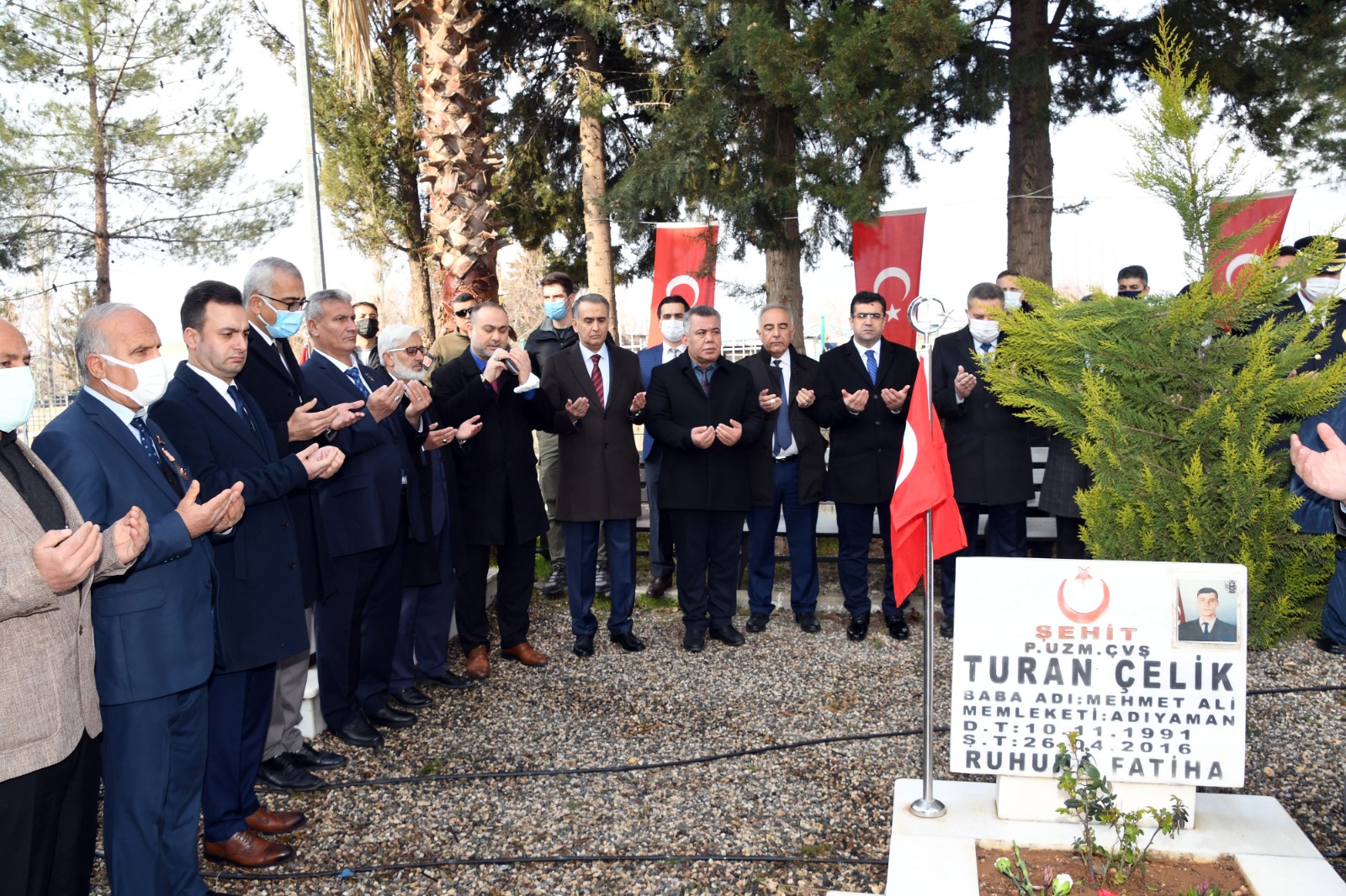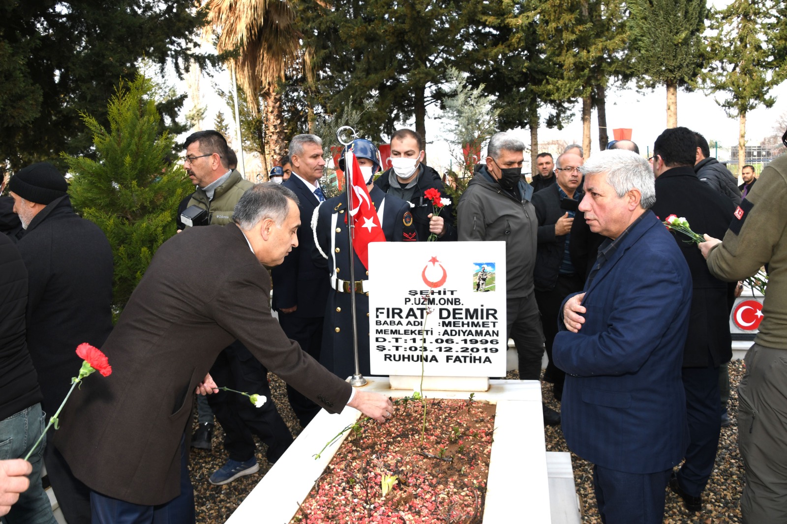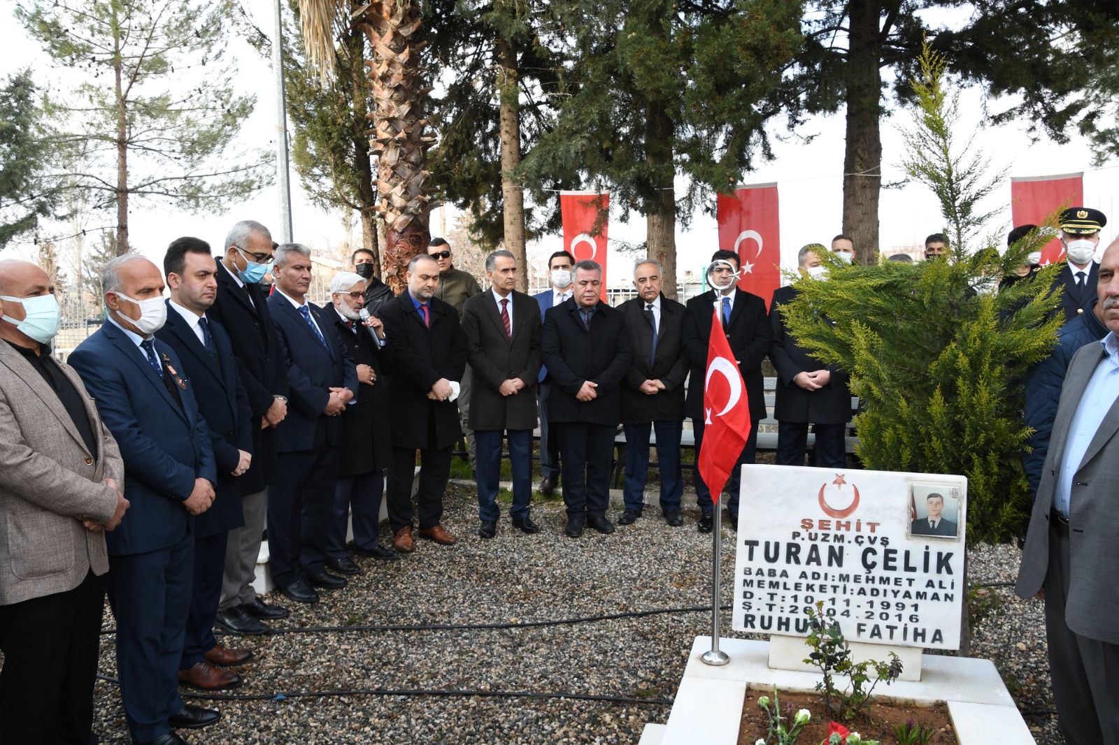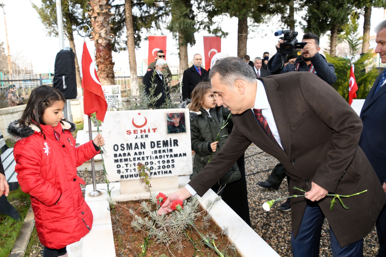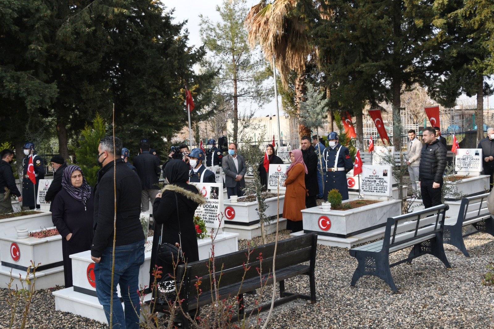 Kur'an-ı Kerim tilavetiyle başlayan şehitlik ziyaretinde İl Müftüsü Mehmet Taşçi'nin yaptığı duanın ardından Vali Çuhadar ve protokol üyeleri, şehit mezarlarını tek tek ziyaret ederek, karanfil bıraktı.