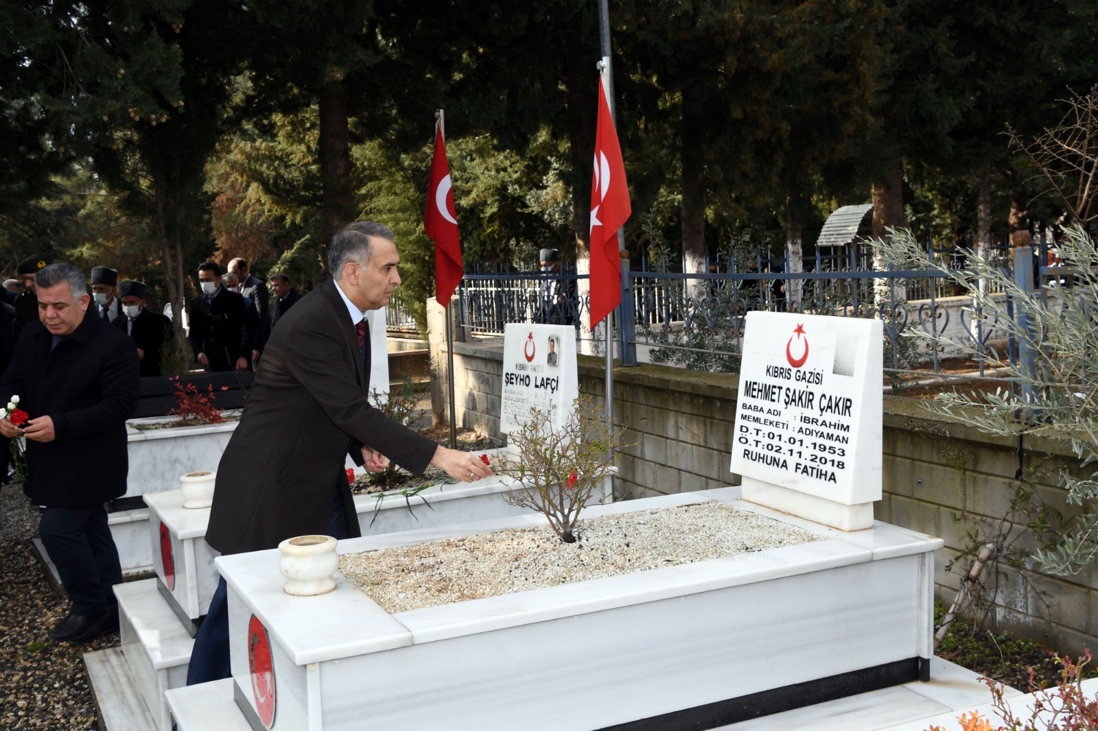Şehitlikte düzenlenen programa Adıyaman Valisi Mahmut Çuhadar, Belediye Başkan Vekili Şerif Ayaz, Cumhuriyet Başsavcısı Bozan Çevik, Adıyaman Üniversitesi Rektörü Prof. Dr. Mehmet Turgut, İl Emniyet Müdürü İbrahim Ergüder, İl Jandarma Komutanı Albay Bilgihan Yeşilyurt, kamu kurumlarının amirleri, Türkiye Harp Malulü Gaziler, Şehit, Dul ve Derneği Şube Başkanı Hacı Erdengi, Türkiye Muharip Gaziler Derneği Başkanı Ahmet Okutan, kamu ve sivil toplum kuruluşu temsilcileri, siyasi parti başkanları, askeri erkân, şehit yakınları, Kıbrıs Gazileri, vatandaşlar ve öğrenciler katıldı.