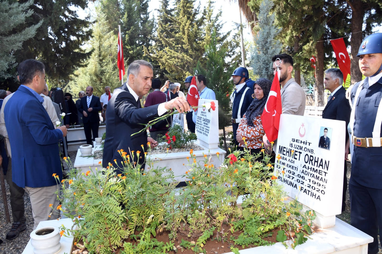 Çelenk töreni sonrası Vali Mahmut Çuhadar ve beraberindeki heyet şehitliği ziyaret edip karanfil bıraktı. Şehitlik ziyaretinde İl Müftüsü Mehmet Taştan tarafından vatan uğruna can veren kahraman şehitlerimiz için Kur'an-ı Kerim okunarak dua edildi.