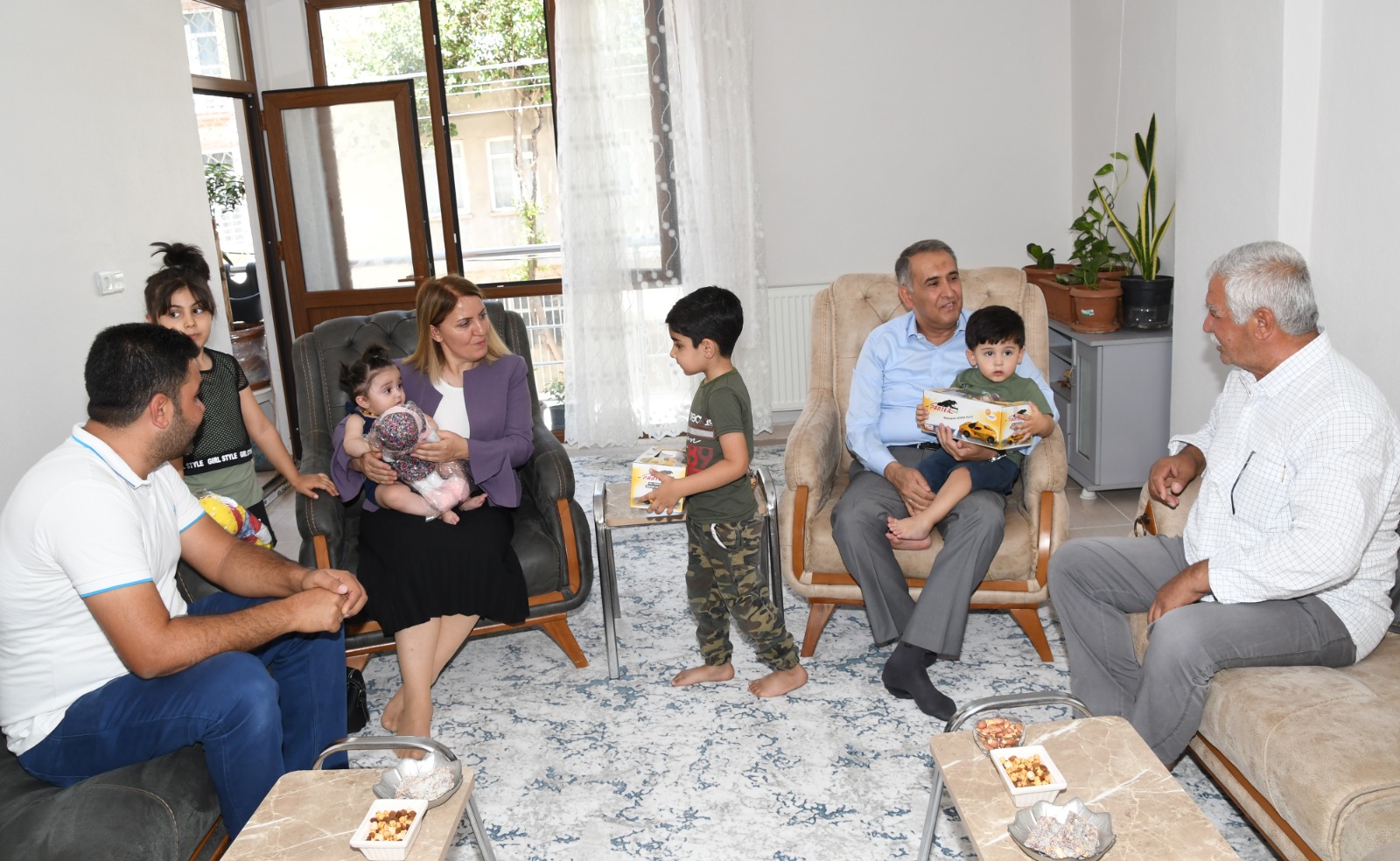 Adıyaman'a atandığı günden bu yana her zaman ihtiyaç sahibi aileler ile yetim ve öksüzleri ziyaret ederek devletin şefkat elini uzatan Adıyaman Valisi Mahmut Çuhadar, eşi Serinay Çuhadar'la birlikte "Babalar Günü" dolayısıyla Adıyaman'da babasız büyümek zorunda kalan ve baba hasreti çeken çocukları evlerinde ziyaret etti.