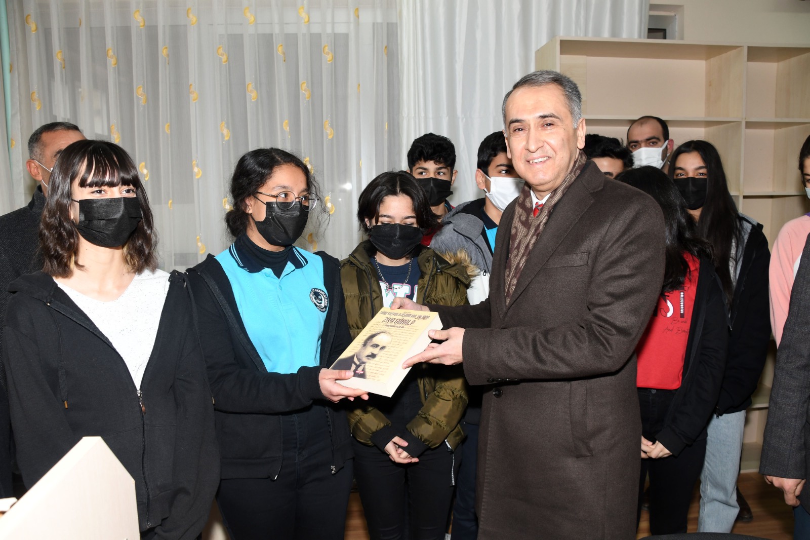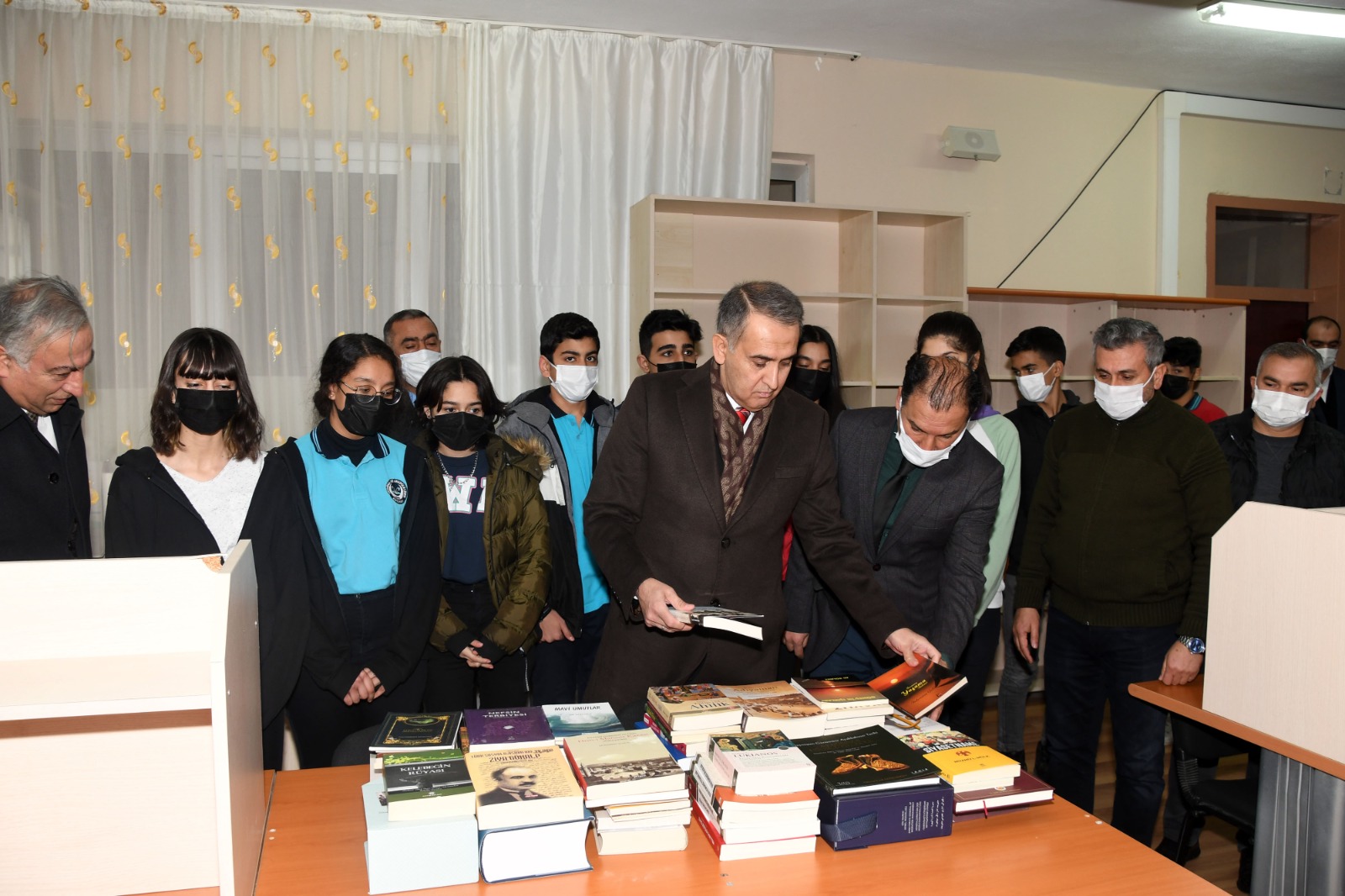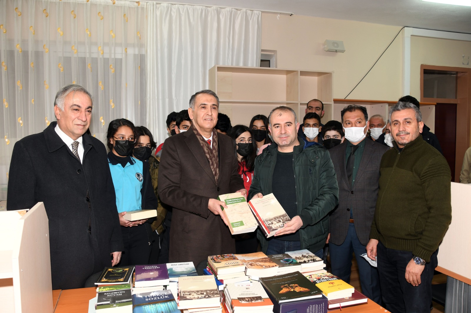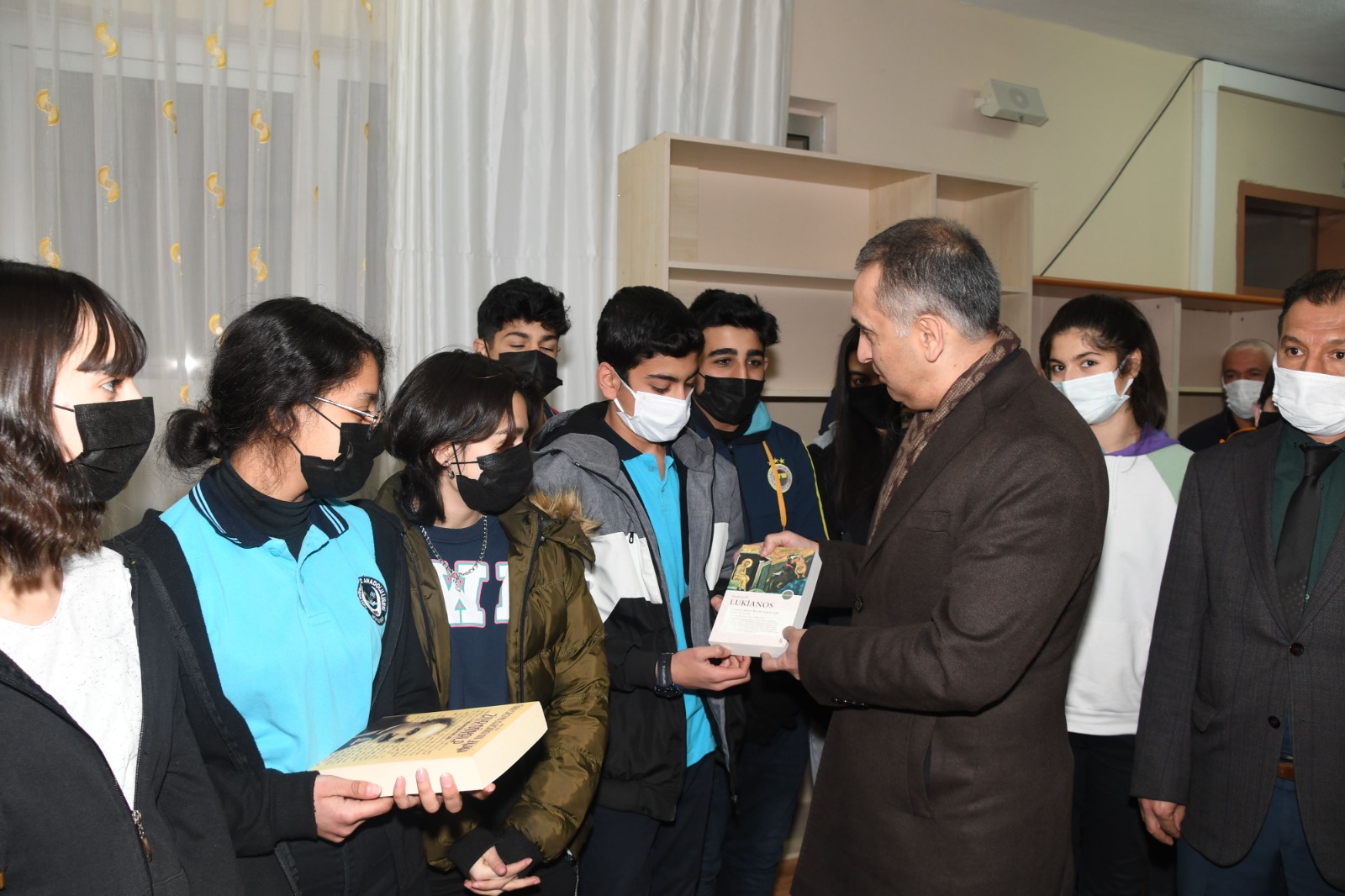 Vali Mahmut Çuhadar, evinde bulunan yaklaşık 100 kitabı Ertuğrul Gazi Anadolu Lisesi kütüphanesine bağışladı.