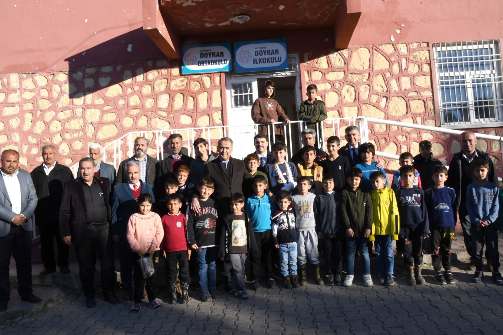 Ziyarette Doyran Köyü ilk ve ortaokulunu da ziyaret eden Vali Mahmut Çuhadar, okulun ihtiyaçları, fiziki yapısı, öğrenci sayısı ve başarı durumu hakkında okul müdüründen bilgi aldı.