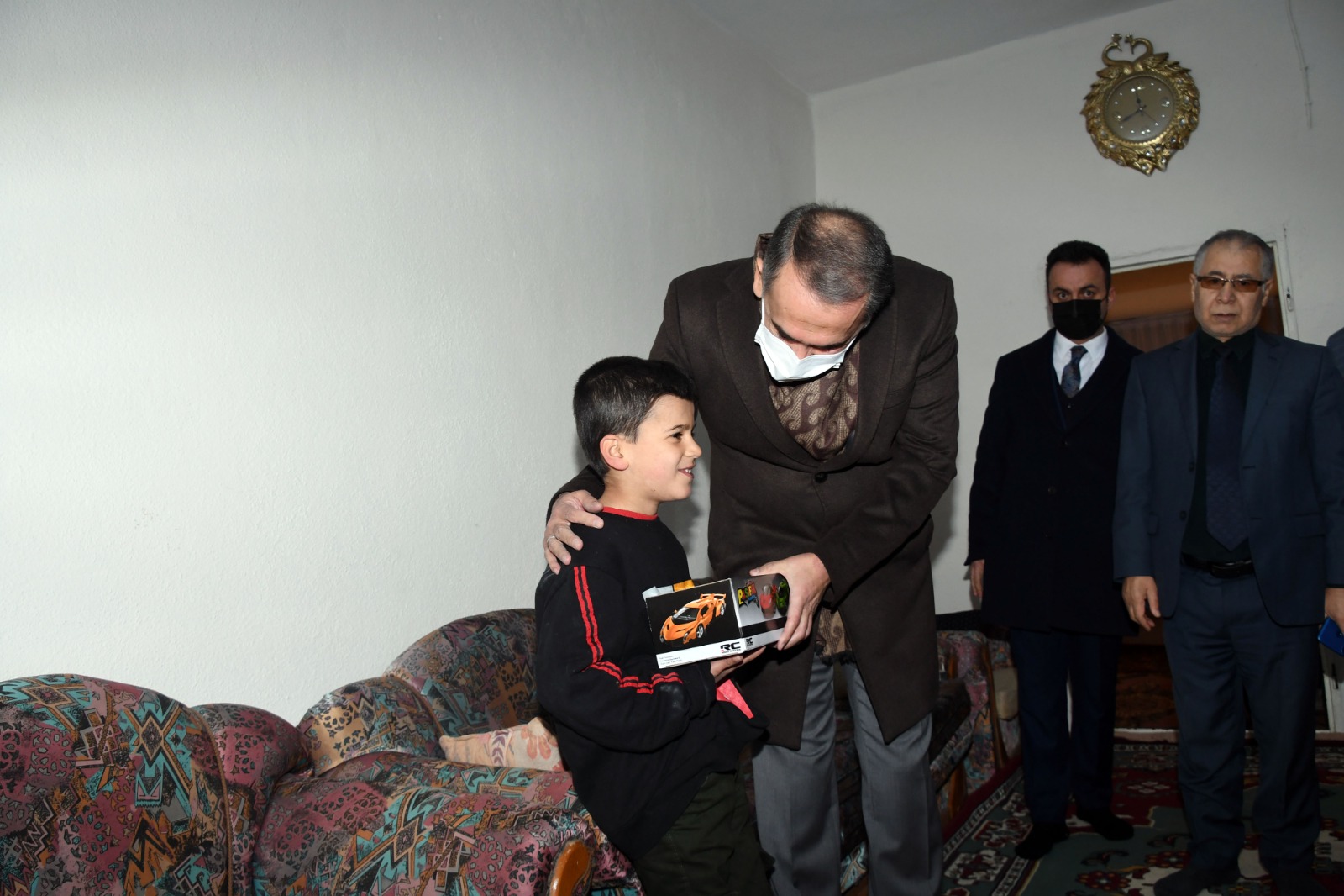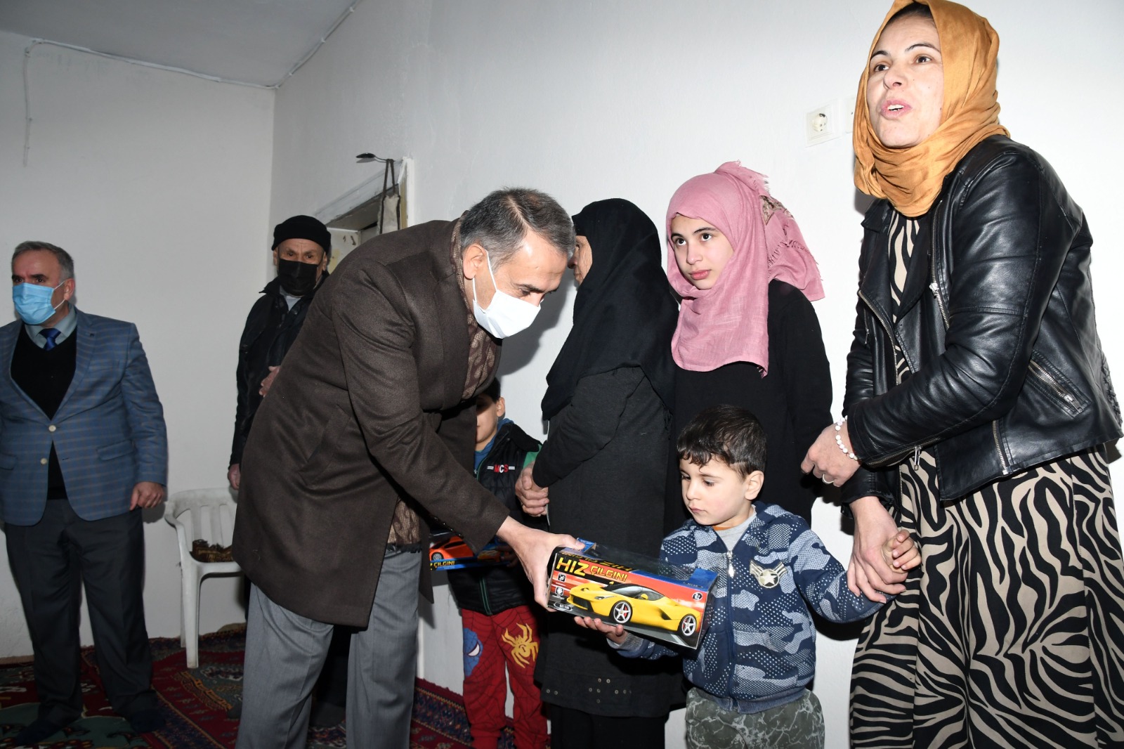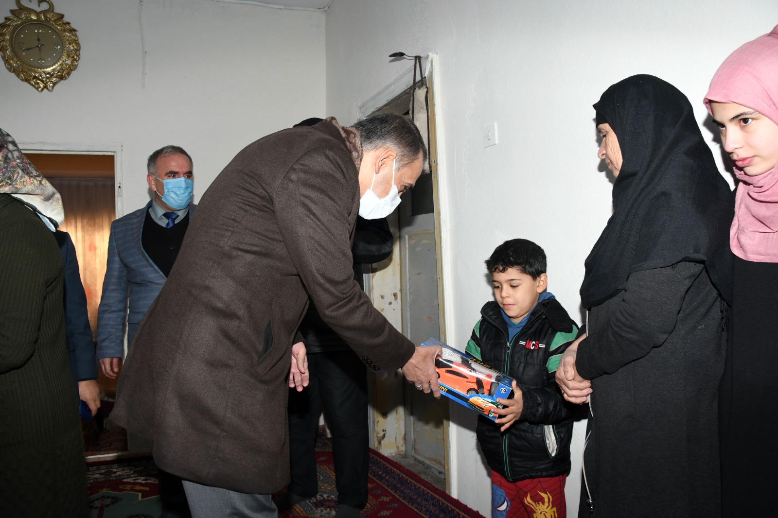 Kerkük Türkmenlerinden İsmail Bayatı ve ailesini yeni evinde ziyaret eden Vali Mahmut Çuhadar, Bayatı ailesiyle bir süre görüşerek, çocuklara oyuncak ve çeşitli hediyeler verdi.