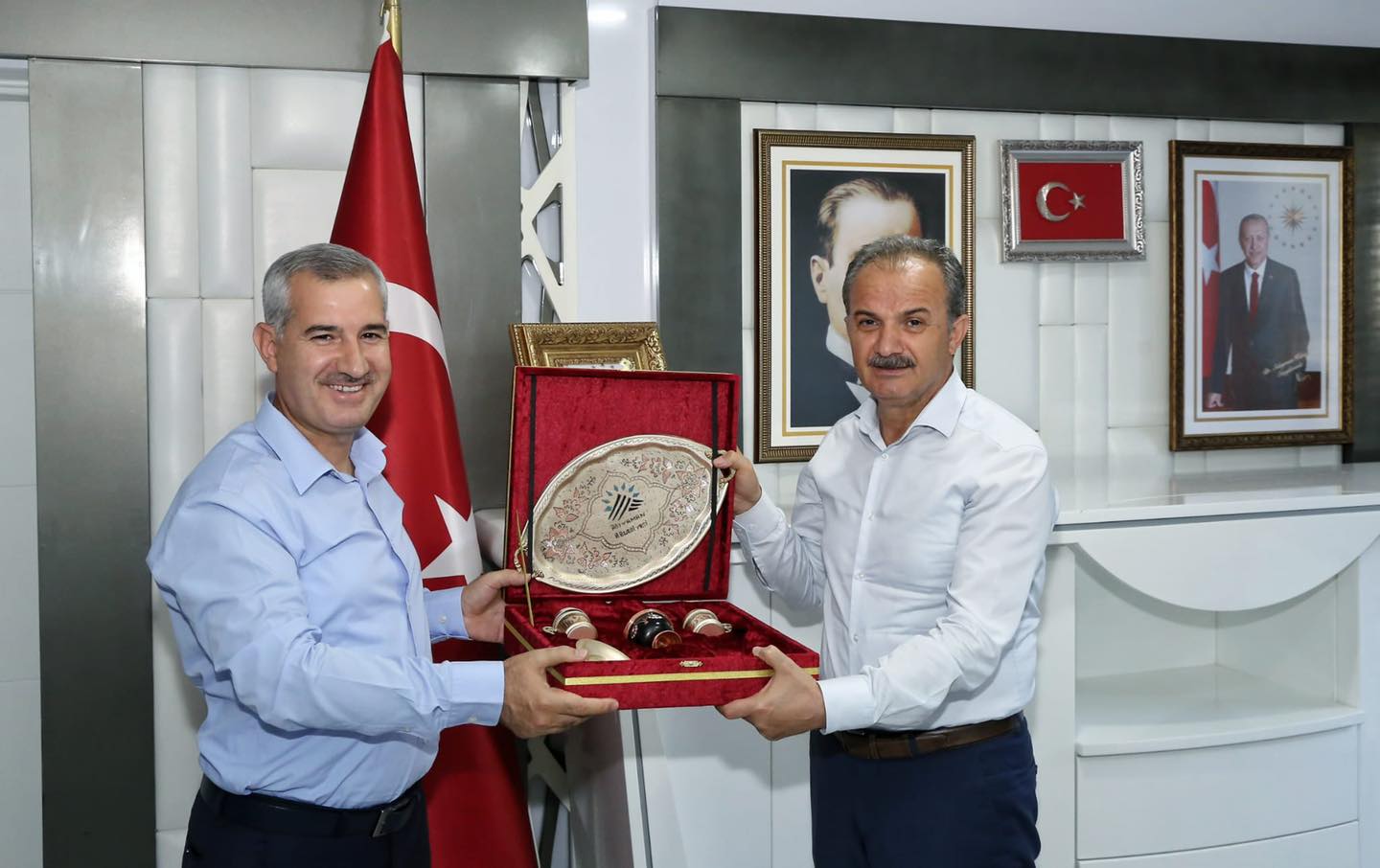 Başkanlık makamında gerçekleşen ziyarette, Yeşilyurt Belediye Başkanı Mehmet