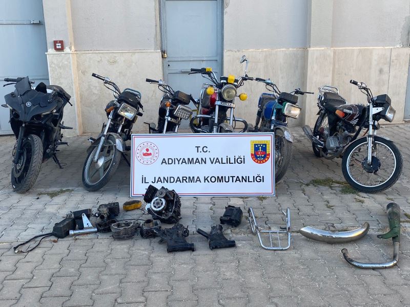 Adıyaman İl Jandarma Komutanlığı Besni İlçe Jandarma Komutanlığı ekiplerince Adıyaman il genelinde çalınan motosikletlerin Besni İlçe Jandarma Komutanlığı sorumluluk bölgesinde olduğu ve parçalanarak satıldığı yönünde bilgi alınması üzerine yapılan planlı ve titiz çalışma neticesinde M.G. ve R.D. isimli şahısların motosikletleri çaldıkları tespit edilmiştir. Şahısların çalmış olduğu 6 adet motosiklet ile 2 adet şase numarası silinmiş ve parçalanmış motosiklet bulunmuştur.