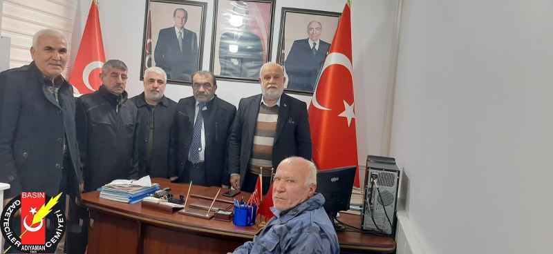 Adıyaman Gazeteciler Cemiyeti Başkanı Zeki Dişkaya MHP Adıyaman İl Başkanı Hüseyin Özgün'ü ziyaret etti. Ziyaret esnasında ülkenin ve ilin genel durumları konuşuldu. Özgün: Geldiği için AGC başkanı Zeki Dişkaya'ya teşekkürlerini iletti.