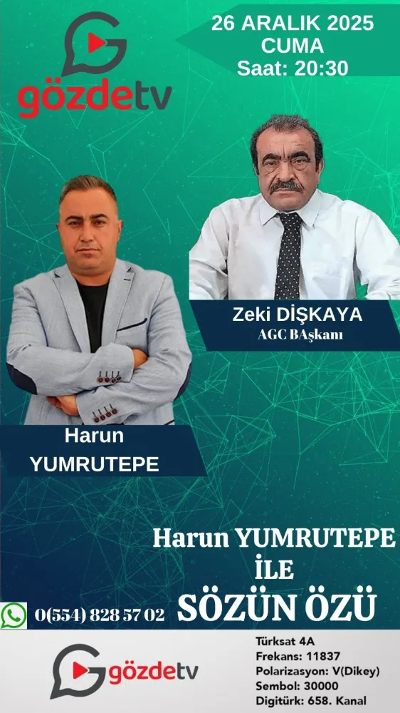 AGC BAŞKANI ZEKİ DİŞKAYA 26/12/2025 CUMA GÜNÜ GÖZDE TV'DE HARUN YUMRUTEPE SUNDUĞU SÖZÜN ÖZÜ PROGRAMINDA SİZLERLE