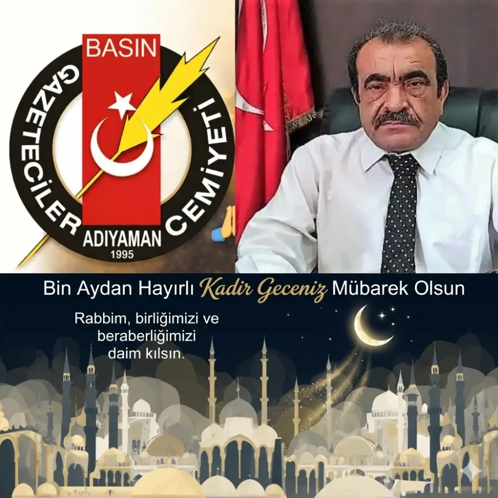 Adıyaman Gazeteciler Cemiyeti Başkanı Zeki Dişkaya, bin aydan daha hayırlı olan Kadir Gecesi münasebetiyle bir kutlama mesajı yayımladı.