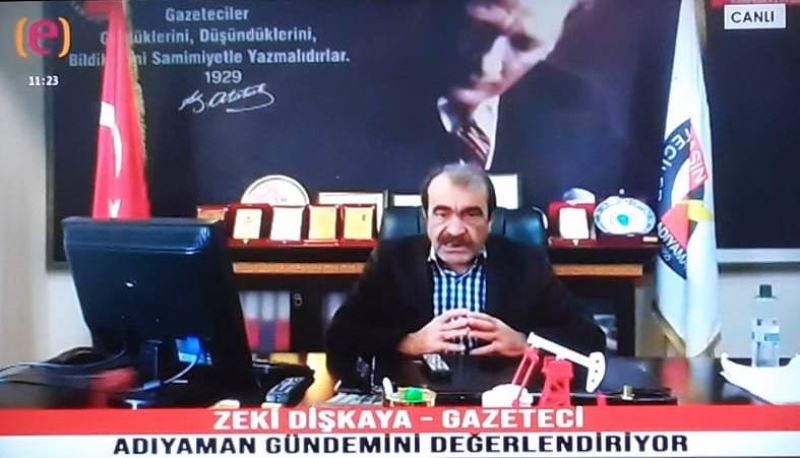 Şanlıurfa’da faaliyet gösteren Edessa TV’ye canlı yayın konuğu olarak katılan Adıyaman Gazeteciler Cemiyeti Başkanı Zeki DİŞKAYA Adıyaman gündemine dair yaptığı açıklamada aşağıdaki ifadelere yer verdi: